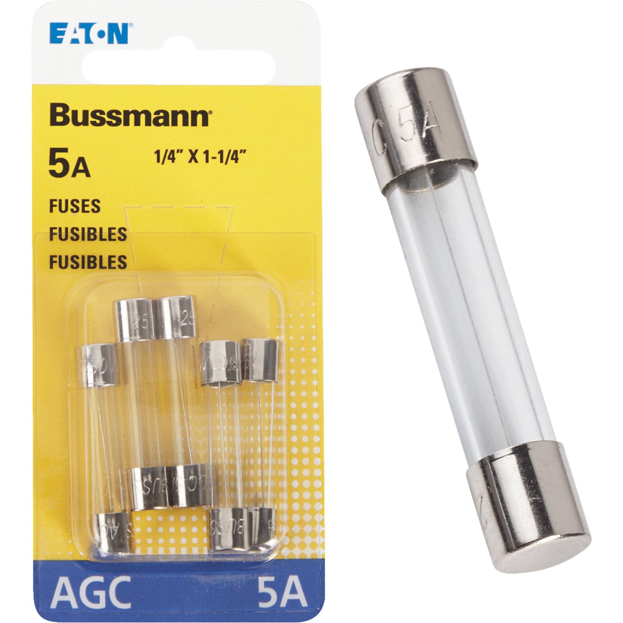 Bussmann BP/AGC-5 5 Amp Fast Acting Glass Tube Fuse, 250V UL Listed Carded, 5-Pack