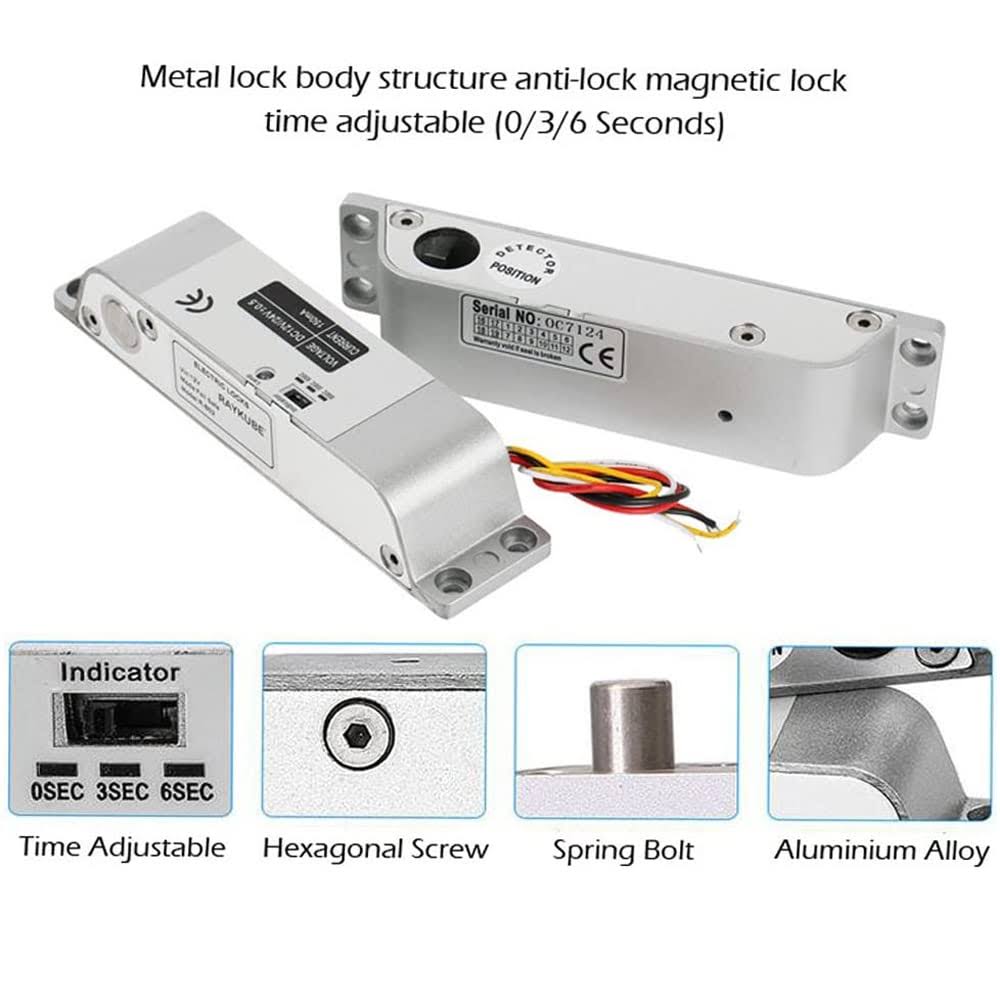to Be Second JASAG DC12V Electric Mortise Lock, Fail Safe Mode with Adjustment Time Delay, Electric Drop Bolt Lock for Door Access Control, Silver (