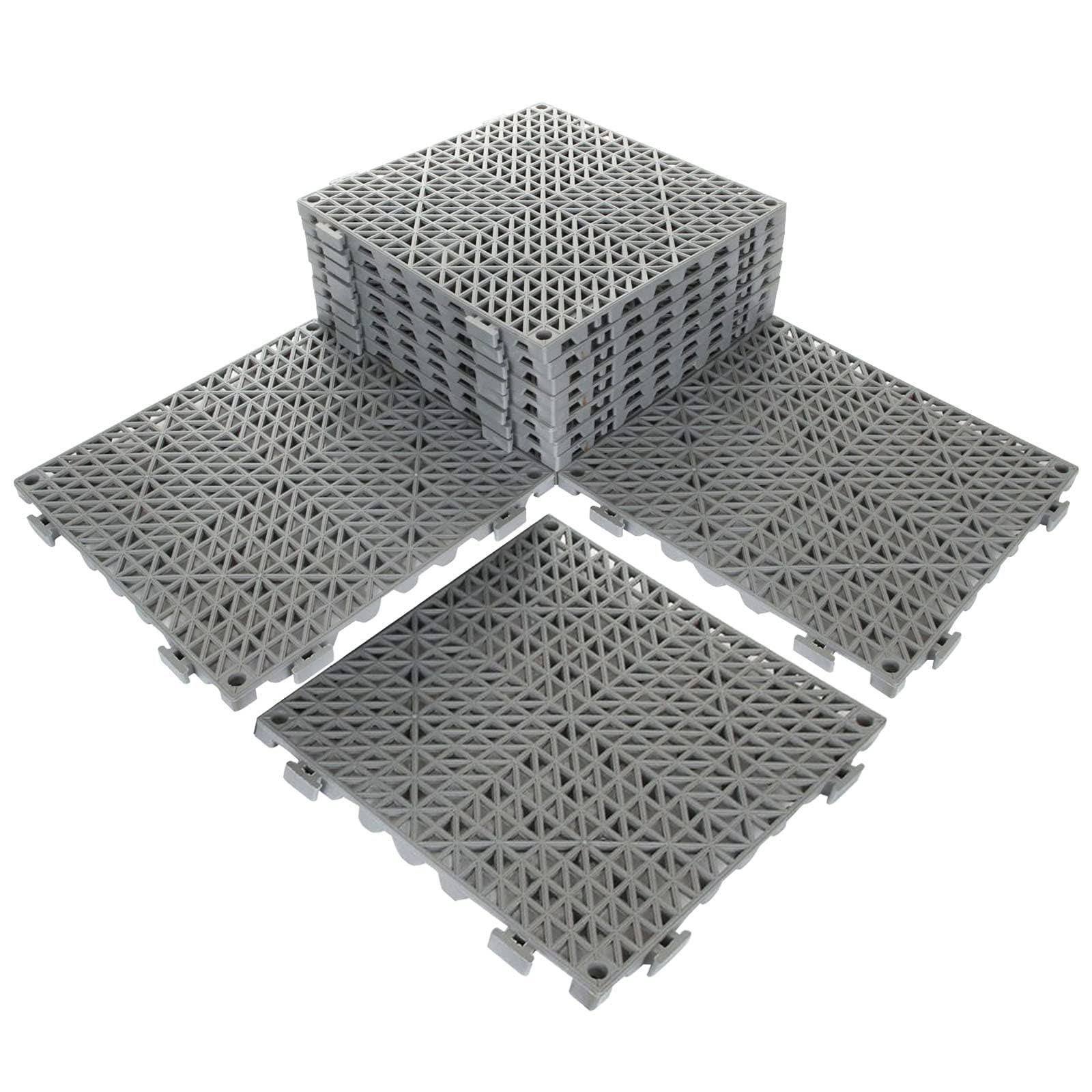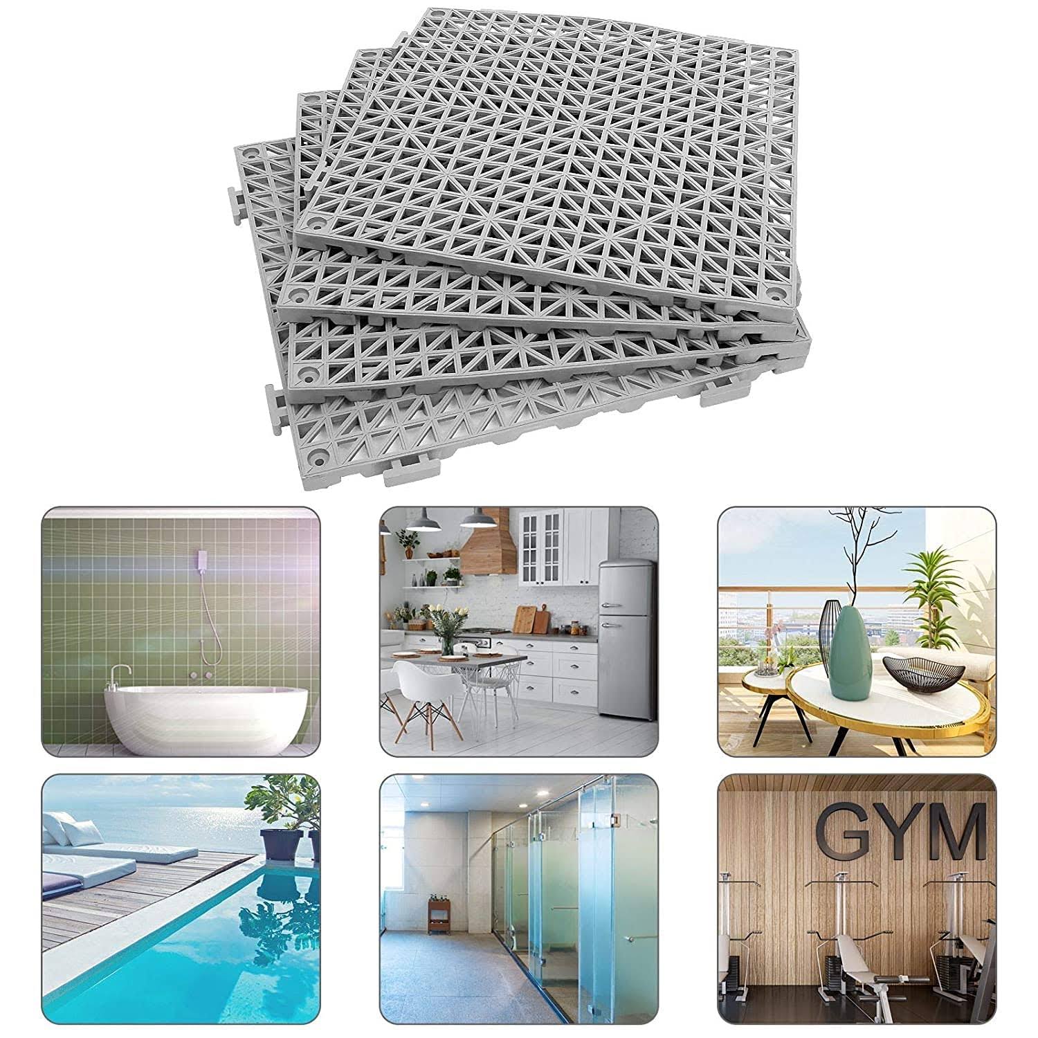 GLEEJON 12pcs Interlocking Soft PVC Flooring Tiles Mat, 12 x 12 inch No-Slip Rubber Splicing Pool Patio Rugged Mats for Floor, Modular Interlocking