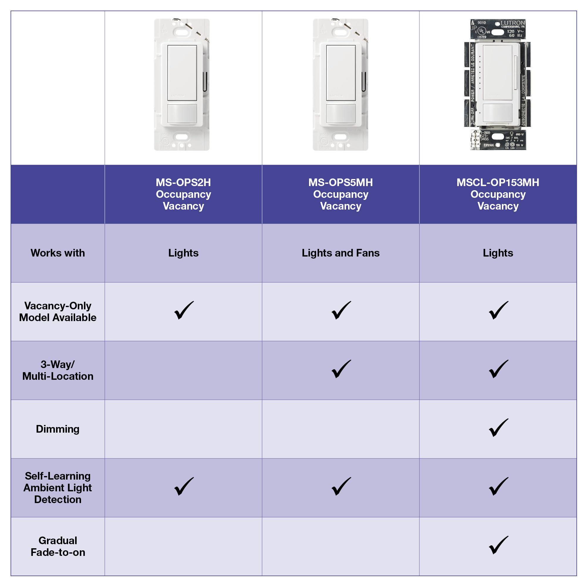 Lutron MS-OPS2-WH Maestro Occupancy Sensor Switch- Single-Pole- White