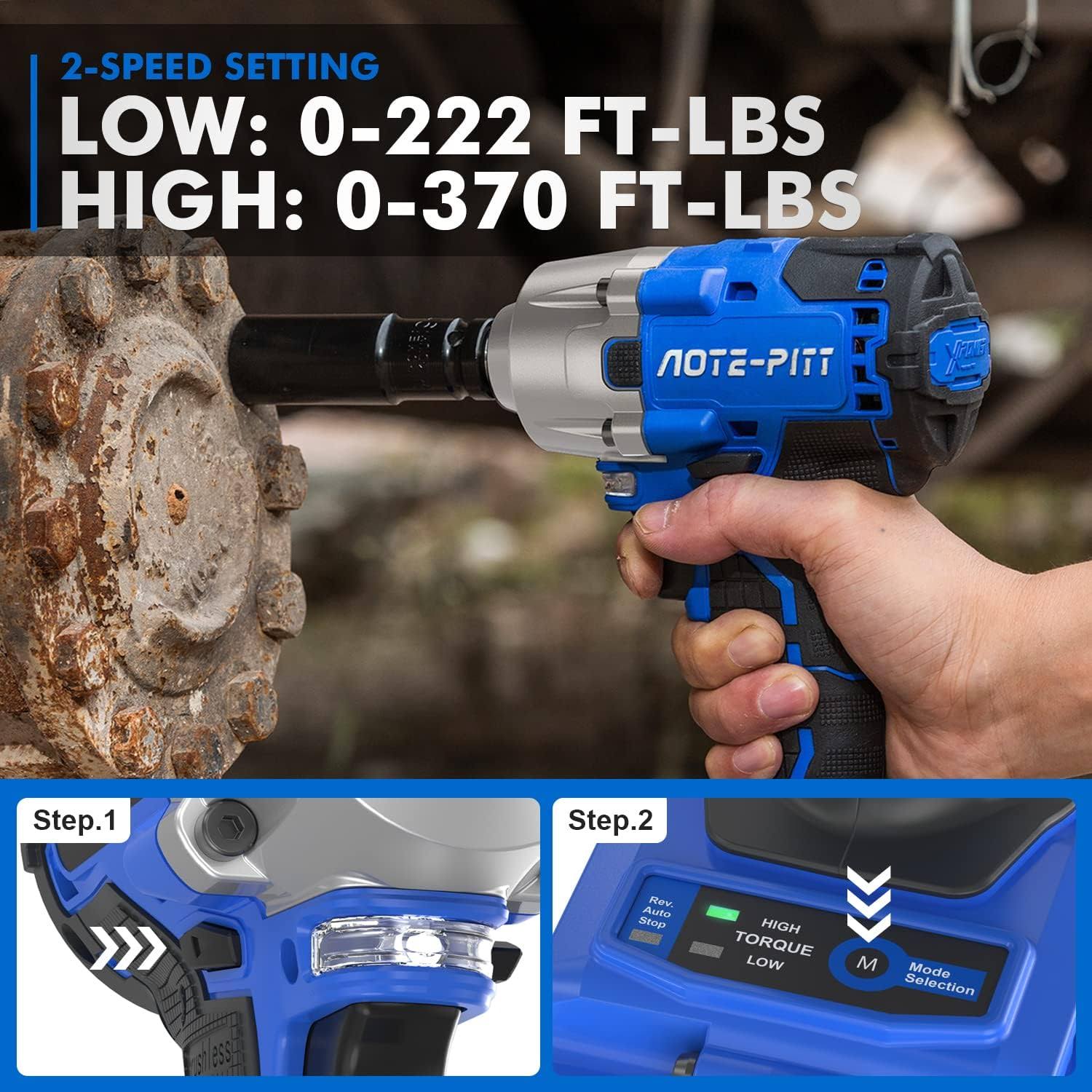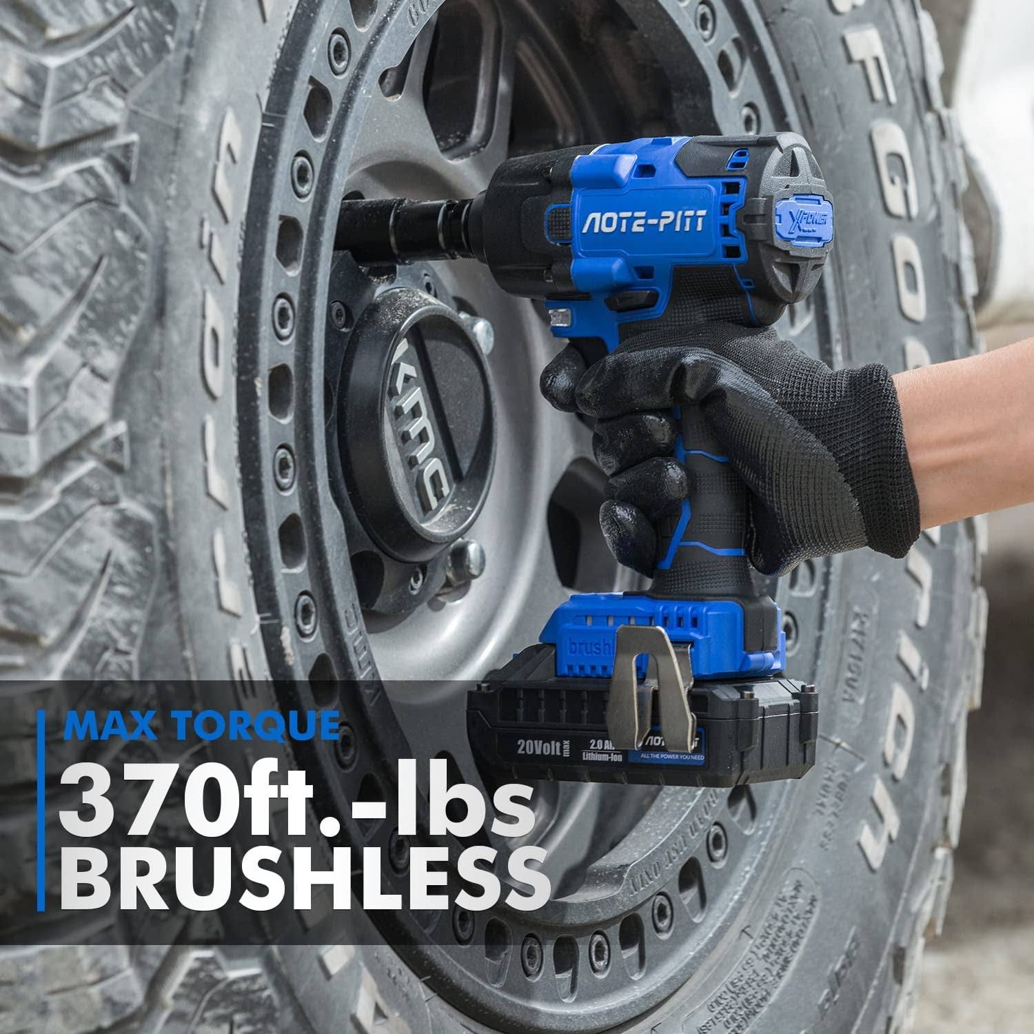 AOTE-PITT 20V 370 ft-lbs Brushless Impact Wrench Kit 1/2 inch Cordless Electric Impact Gun High Torque 3400 IPM Impact Driver with 6 Pcs Drive Impact