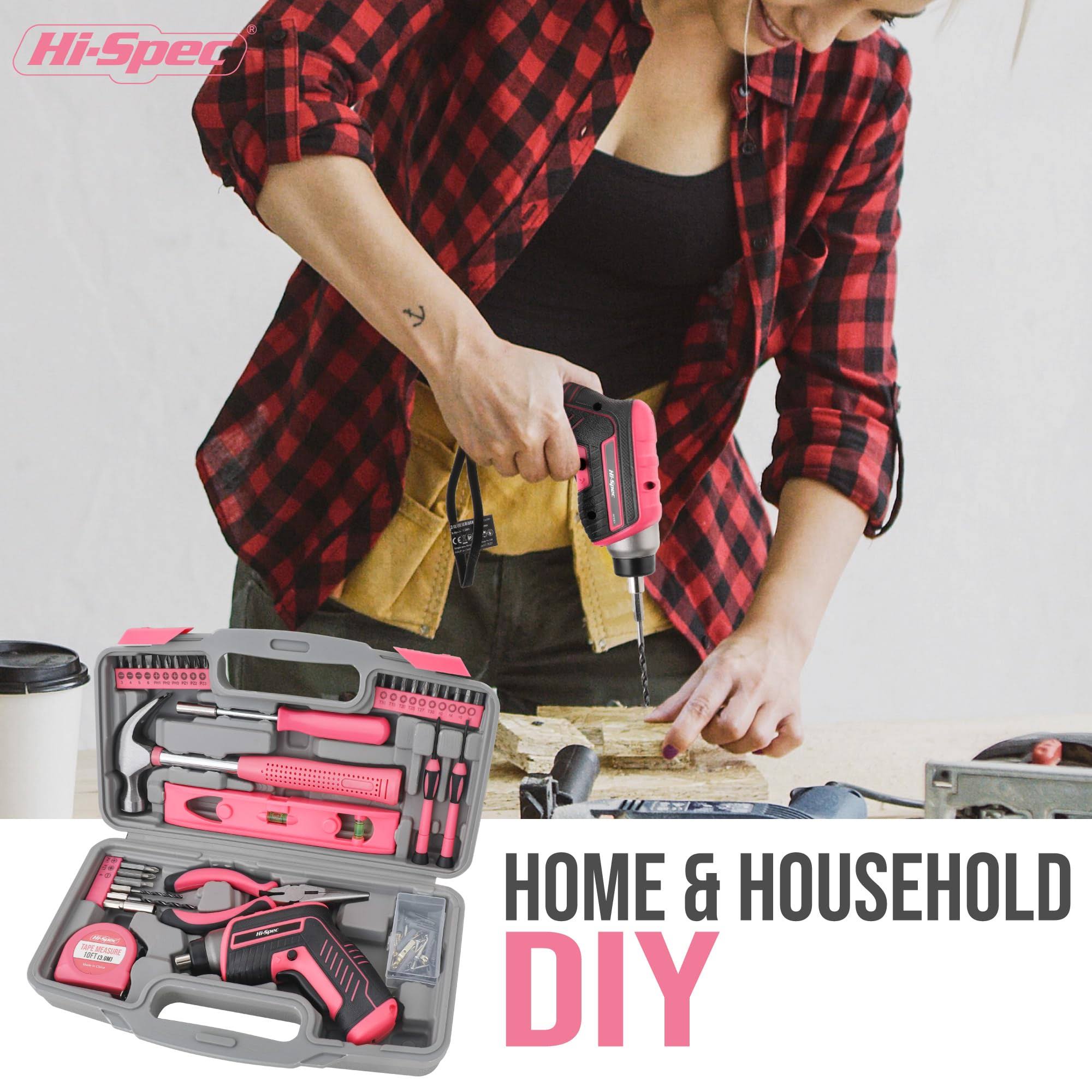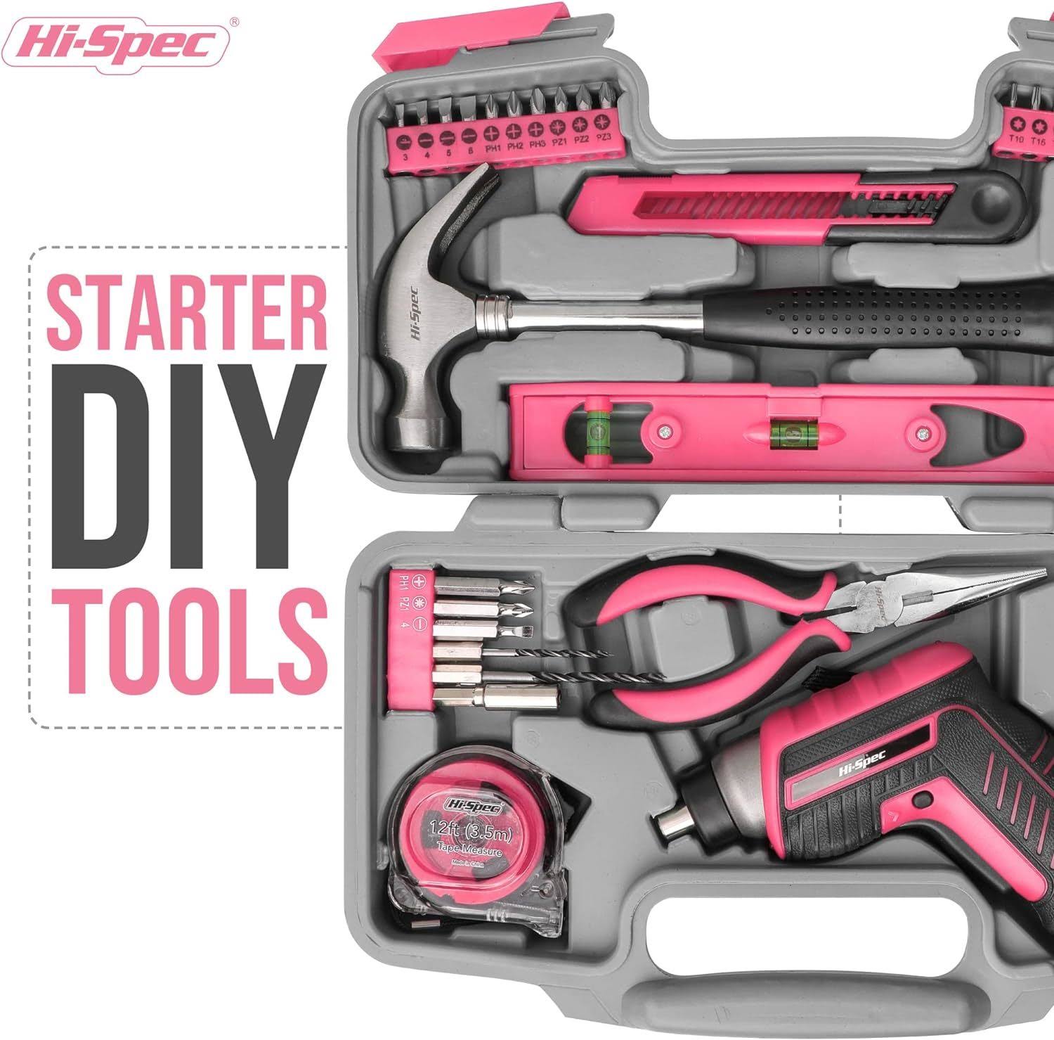 35-Piece Hi-Spec Pink Tool Kit with Drill and 3 Point 6V USB Electric