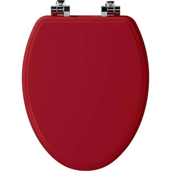 Bemis Weston Slow Close Elongated Closed Front Enameled Wood Toilet Seat in Red Never Loosens Chrome Metal Hinge