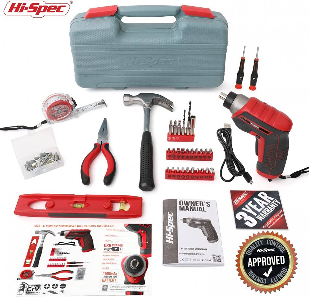 Hi-Spec 35pc Red Tool Kit with 3.6V USB Electric Screwdriver and Drill 3.Red