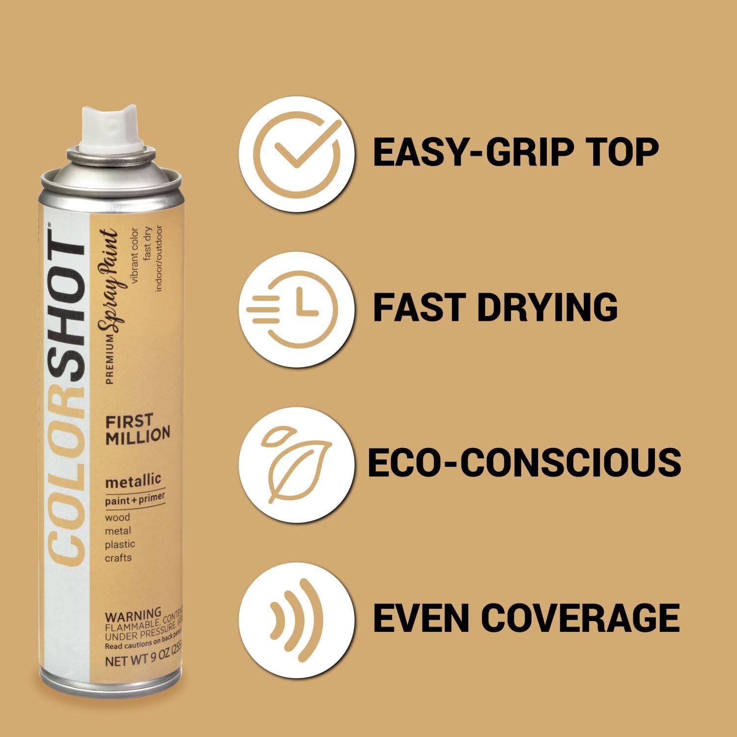 Colorshot First Million Aerosol Metallic Spray Paint- Gold- 9 oz