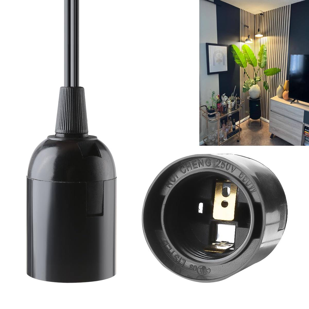 2-Pack Extension Hanging Lantern Cord Cable UL 375W with E26 E27 Socket On/Off Button Pendant Lighting- 6 Feet