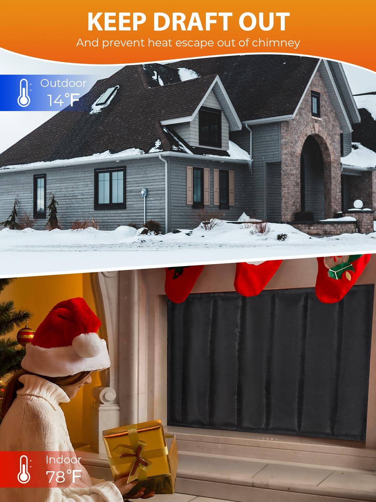 Thmomex Magnetic Fireplace Cover, Indoor Fireplace Blanket Keep Drafts Out Stop Heat Loss Save Energy Fireplace Stove Draft Stopper Chimney Cover