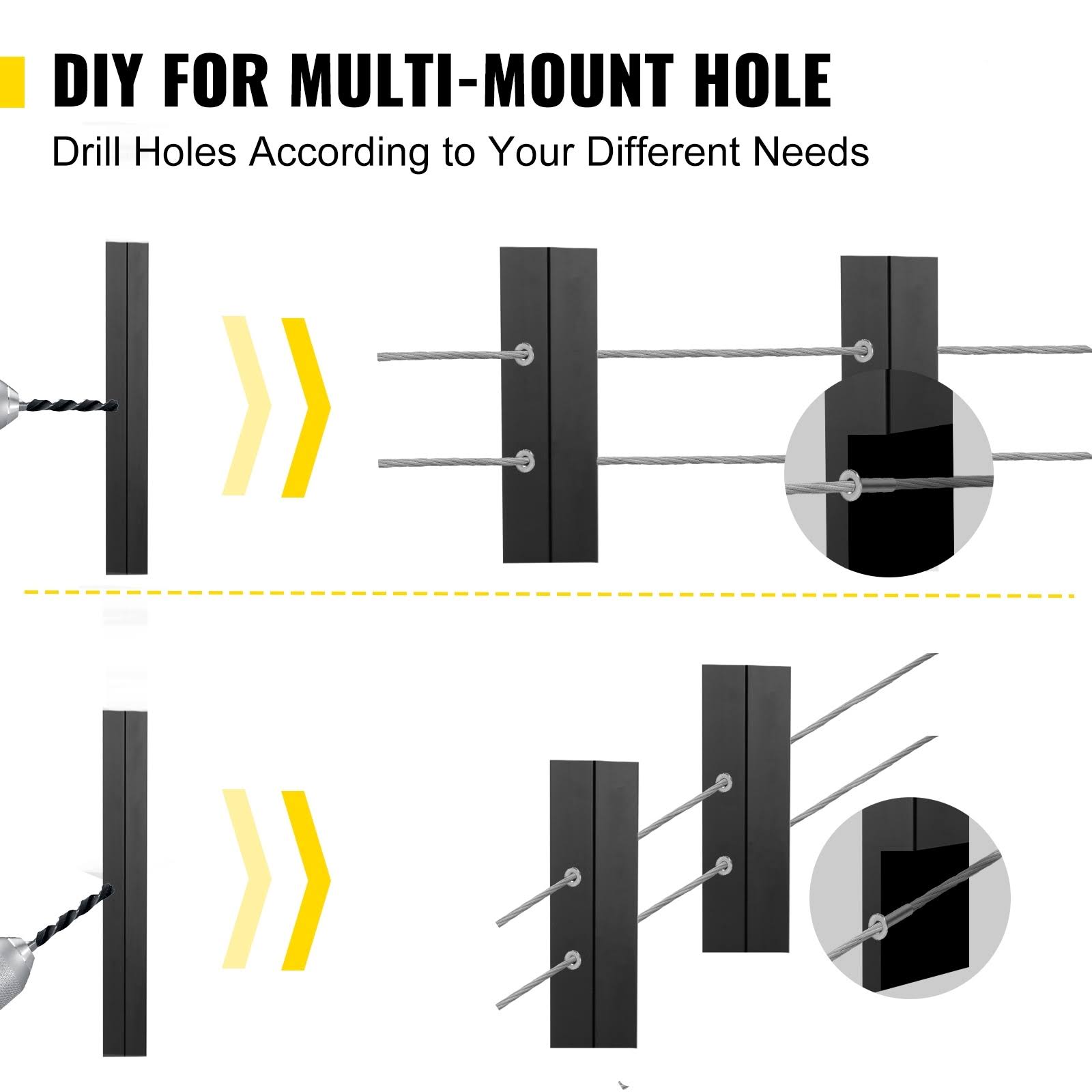 VEVOR Cable Railing Post 42 in. x 0.98 in. x 1.97 in. Stair Railing Kit Without Hole Deck Railing w/ Mount Bracket for Balcony