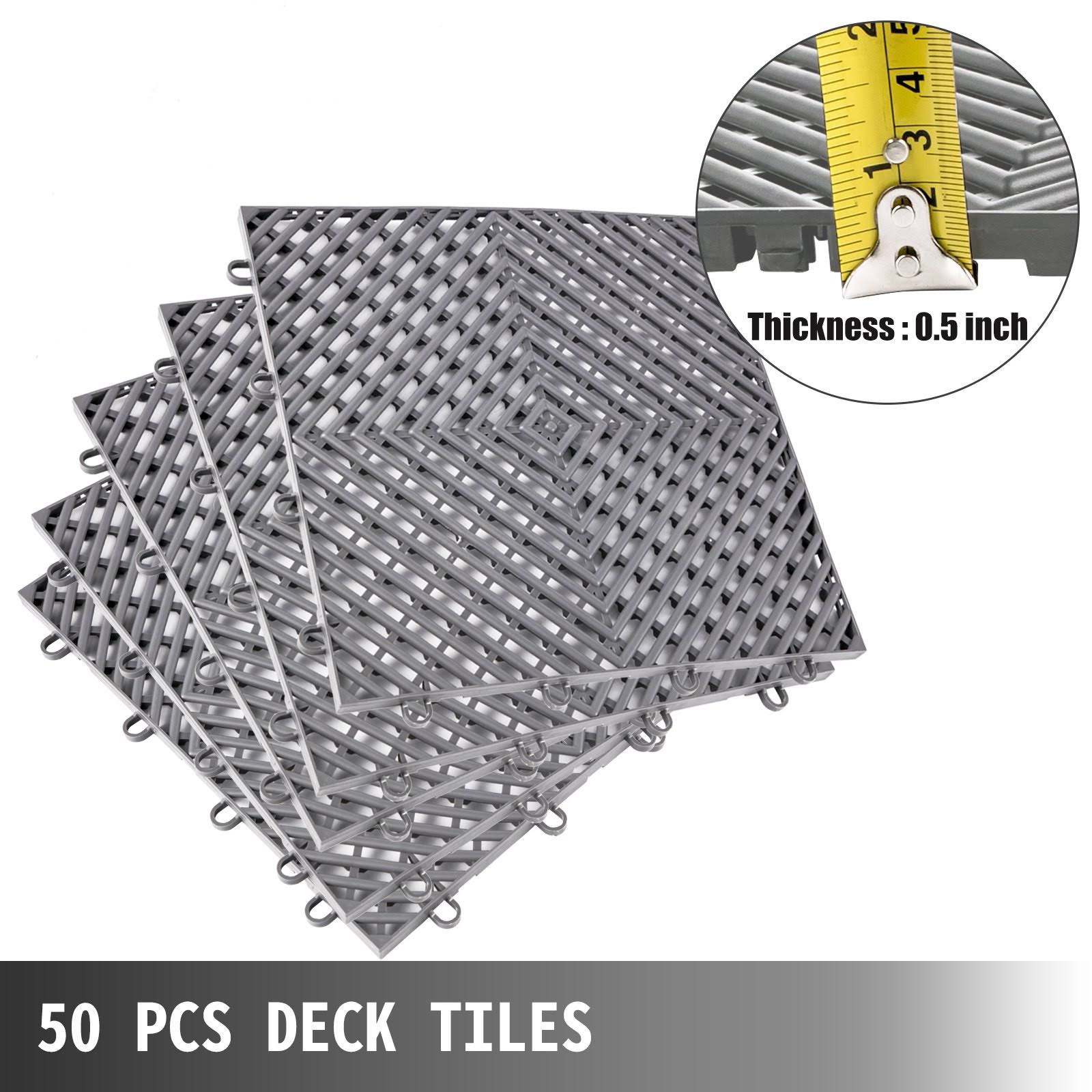 VEVOR Drainage Tiles Interlocking 50 Pcs Gray, Rubber Tiles 12x12x0.5 Inches, Deck Tiles Outdoor Floor tiles, Outdoor Interlocking tiles, Deck