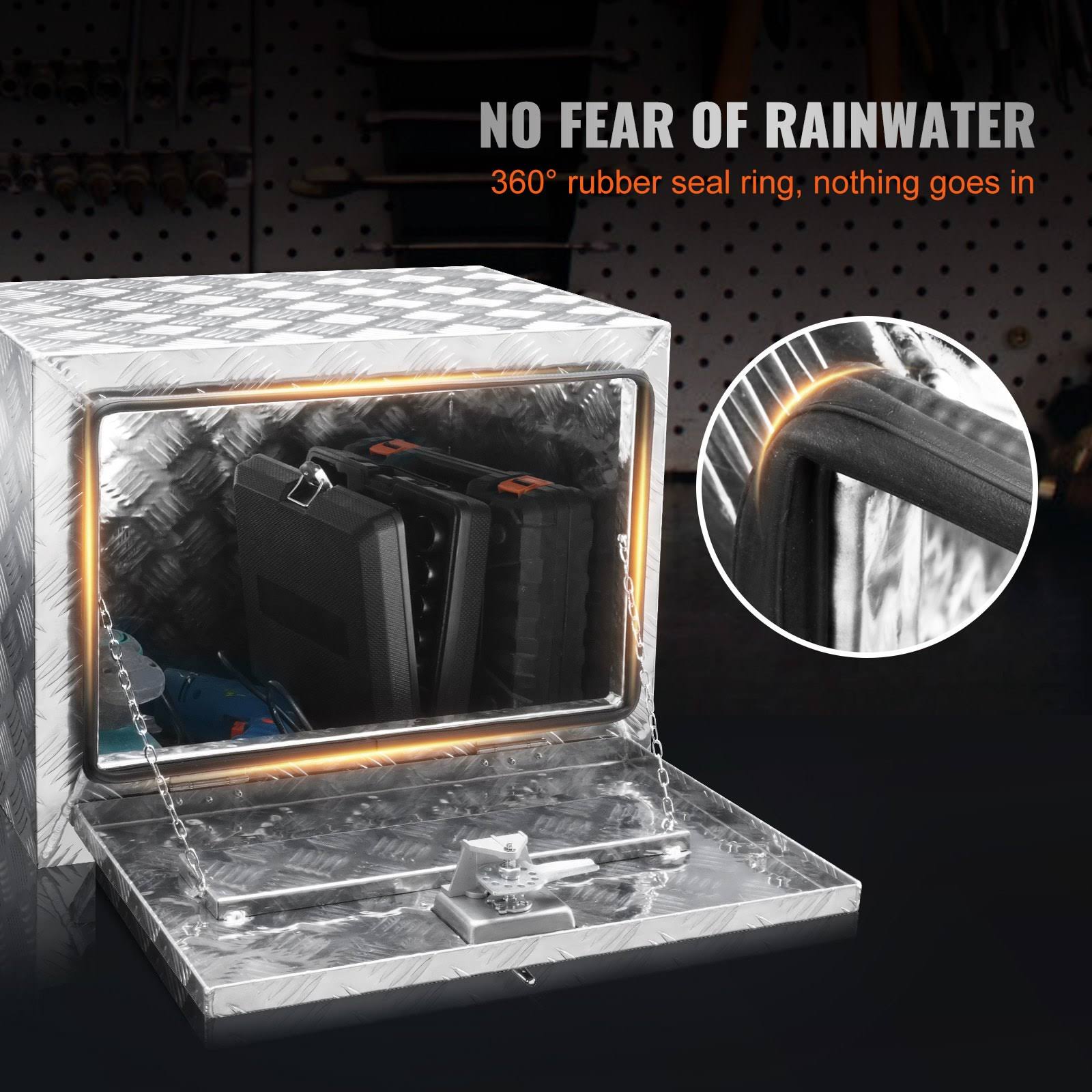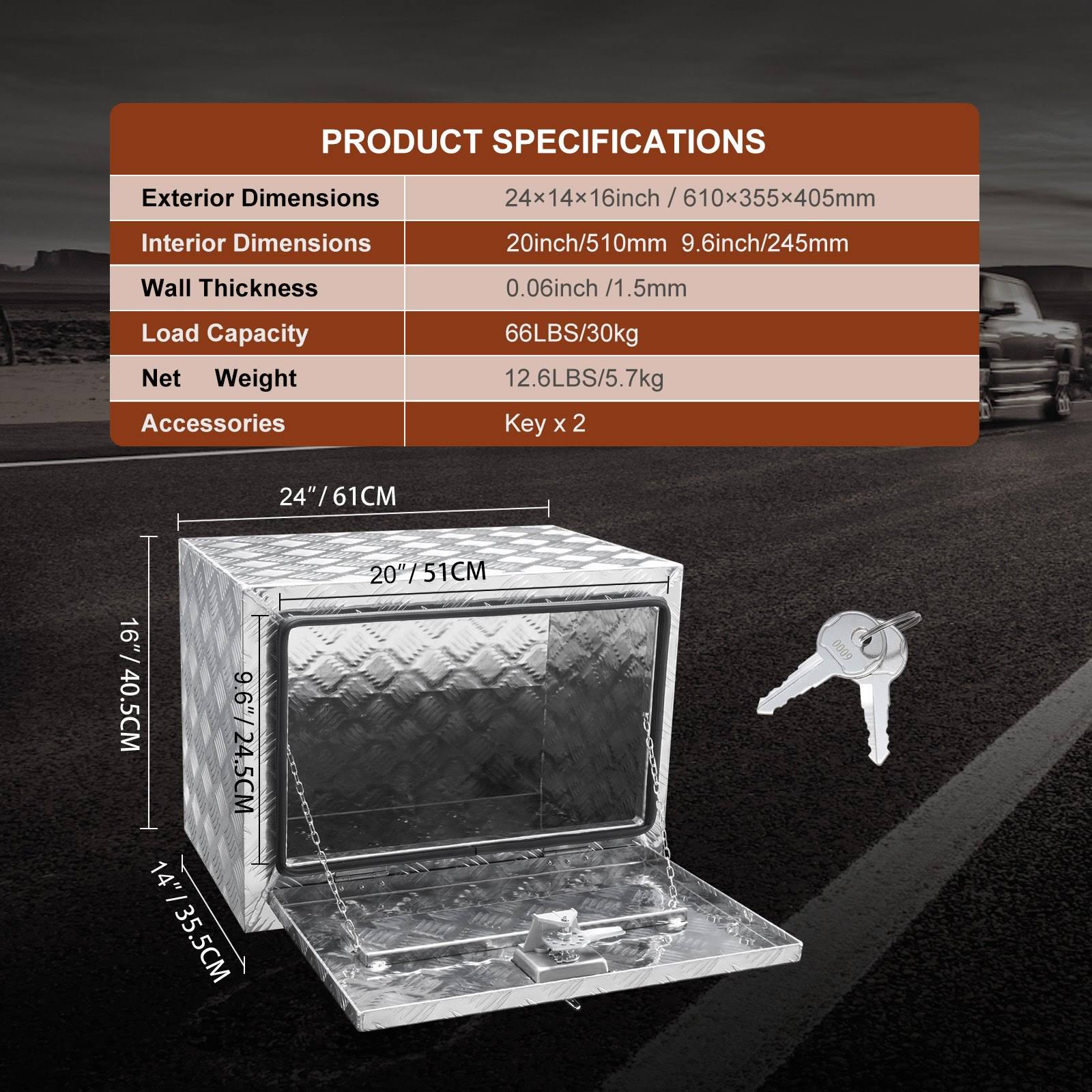 VEVOR Underbody Truck Box, 24"14"16" Pickup Storage Box, Heavy Duty Aluminum Diamond Plate Tool Box with Lock and Keys, Waterproof Trailer Storage