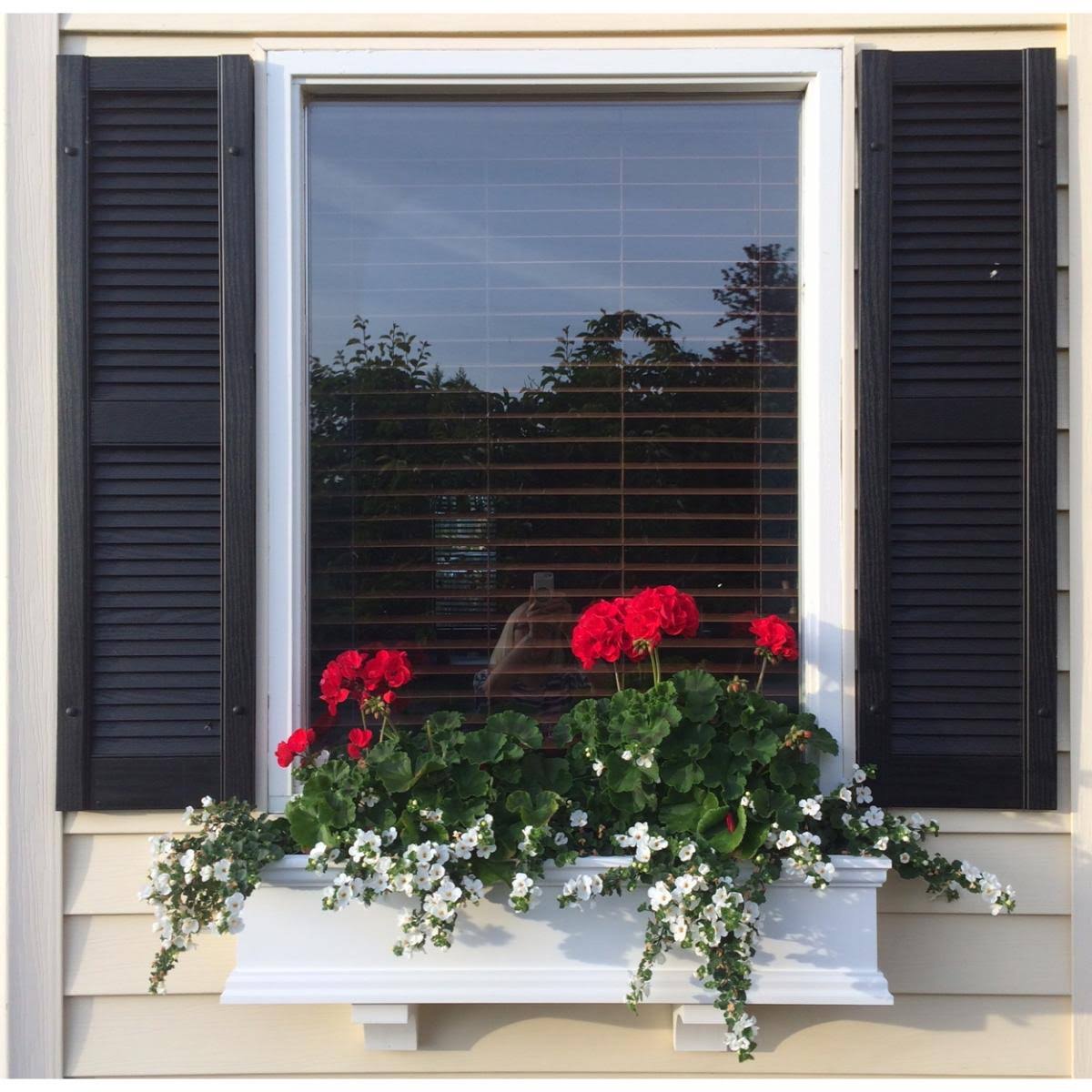 Builders Edge 12 in. x 31 in. Louvered Vinyl Exterior Shutters Pair in Wineberry