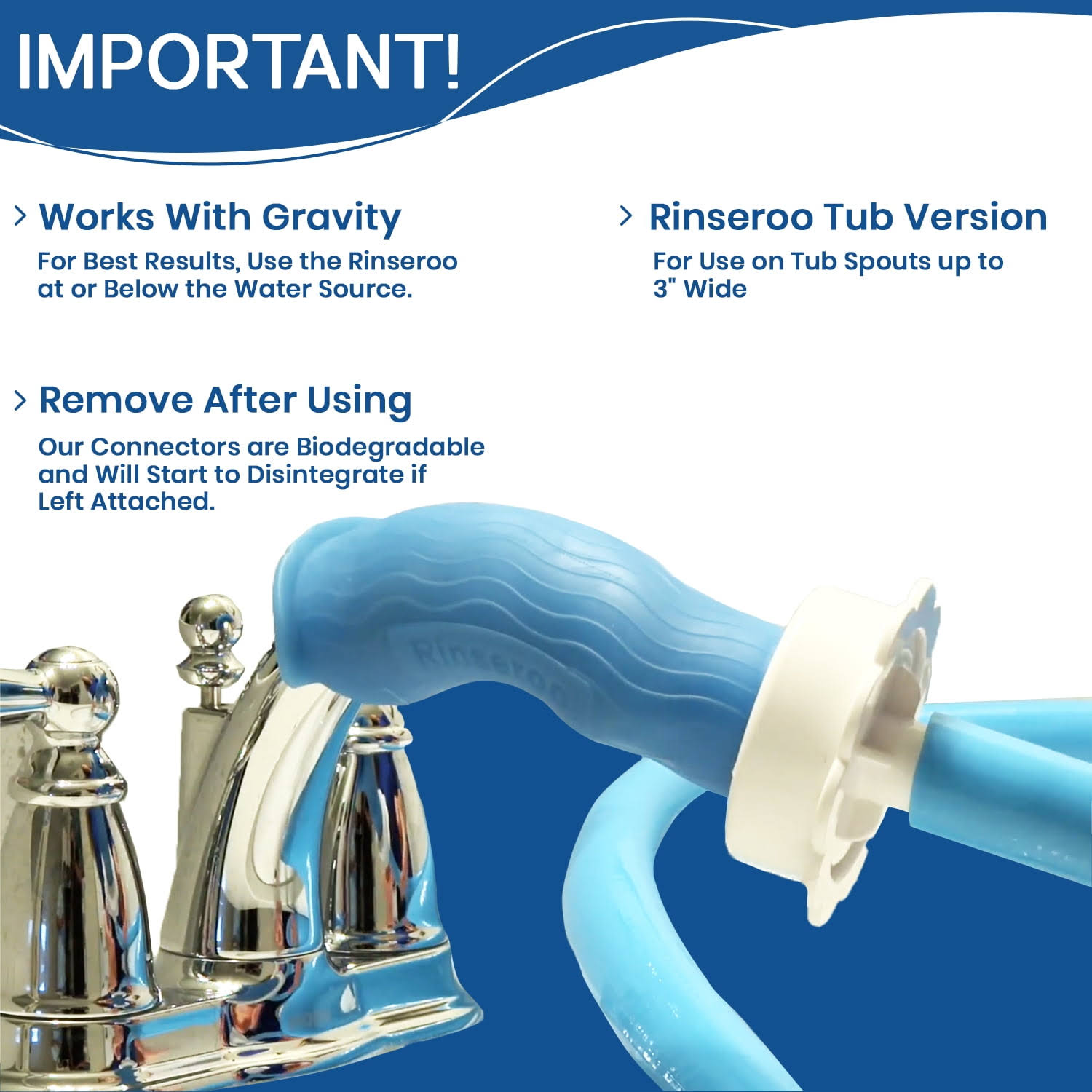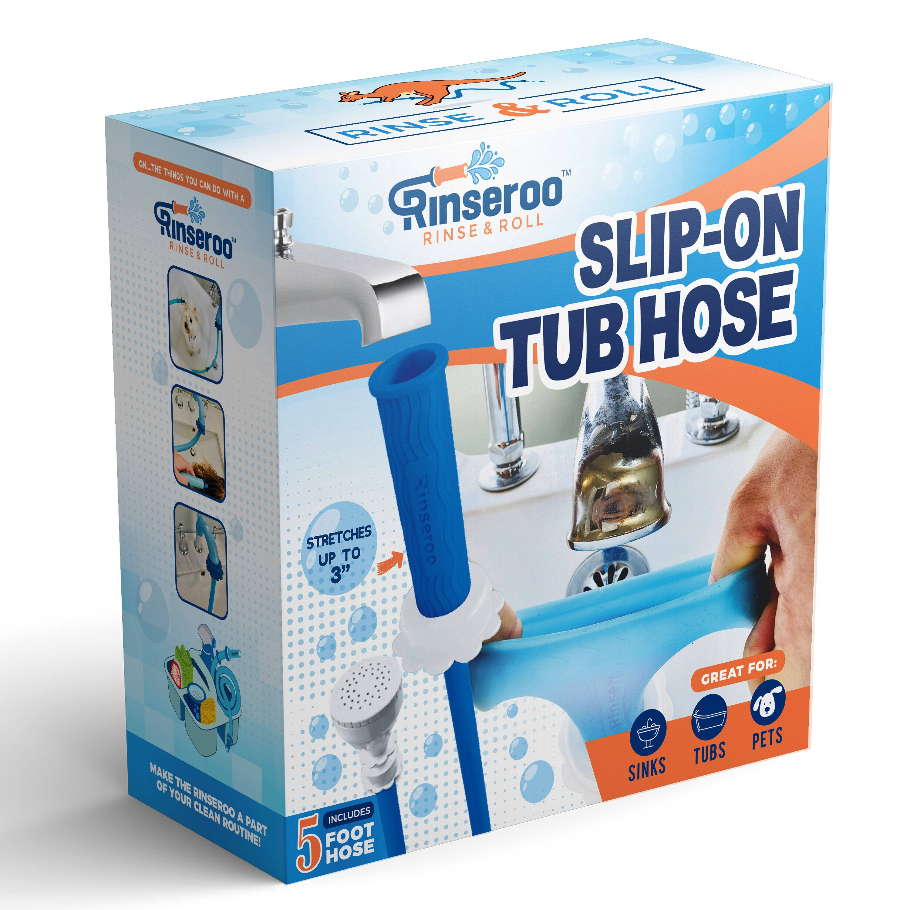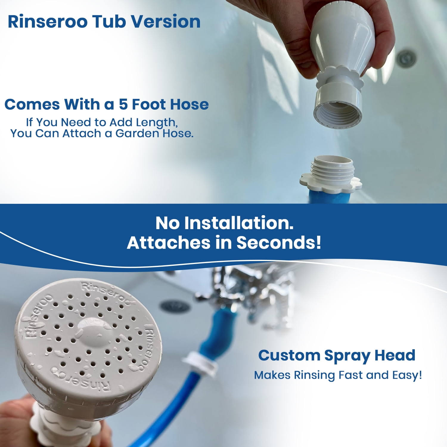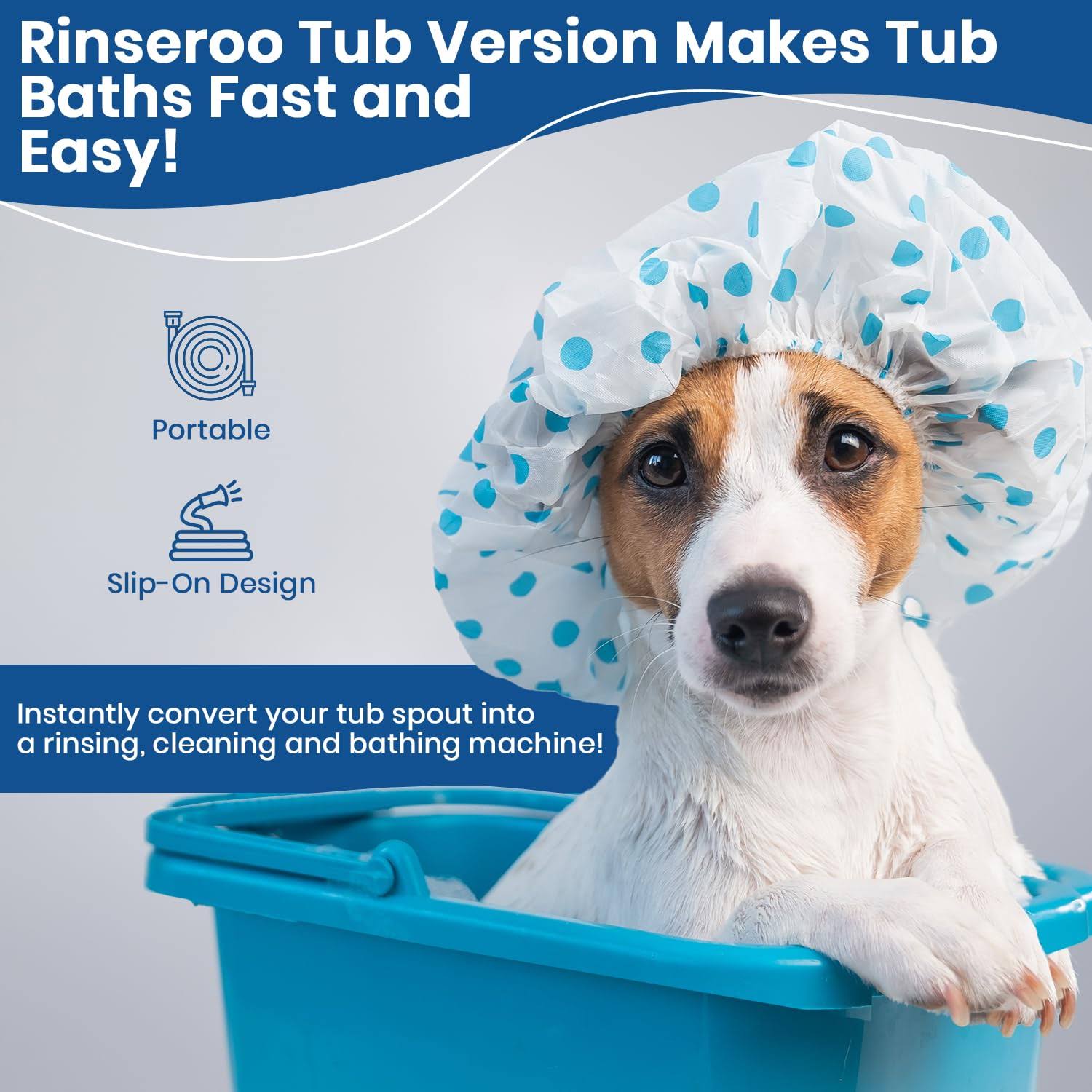 Rinseroo Tub Faucet Hose and Sprayer: Slips on to Tub Spout for Hair Washing, Baby or Dog Bath. Bathtub Faucet Showerhead ATTACHMENT. Shower Adapter 2597