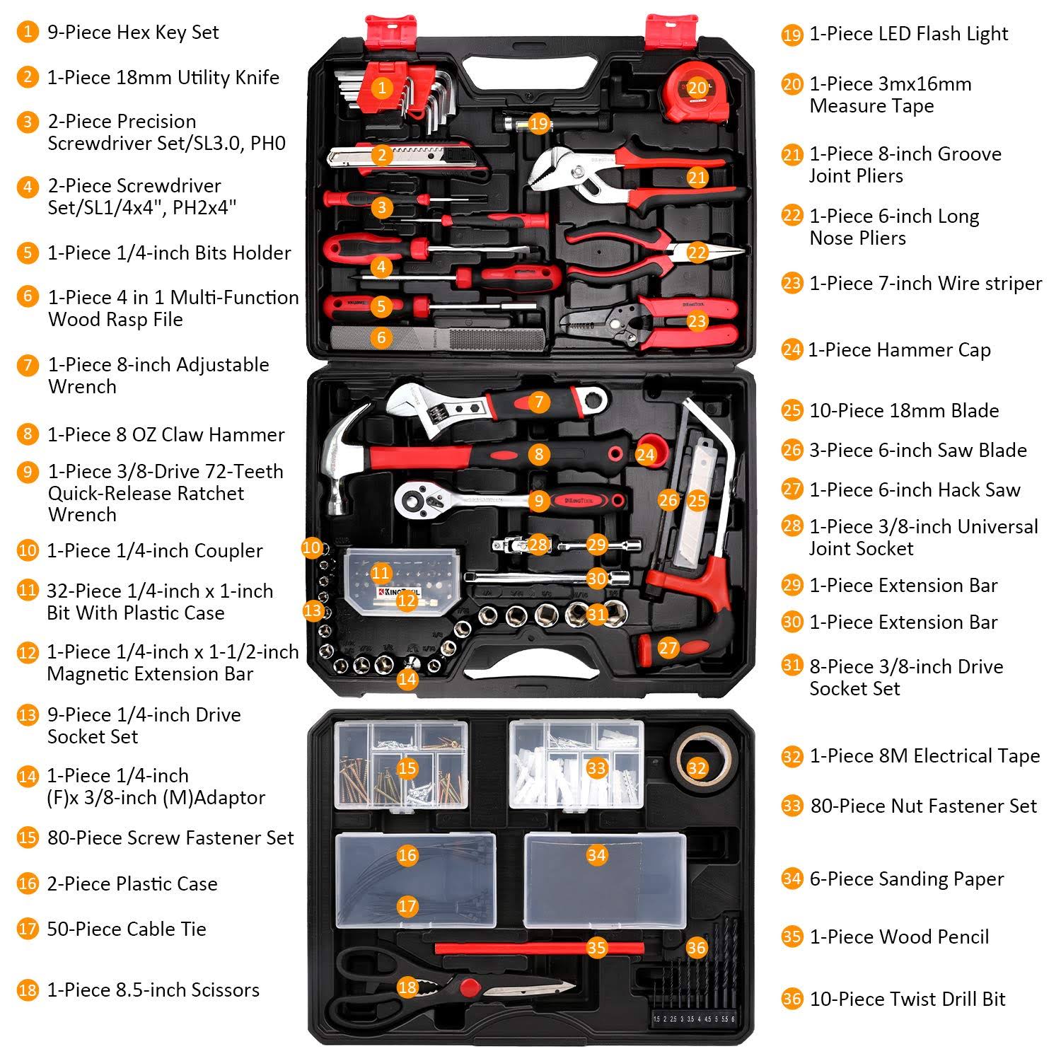 KingTool 325 Piece Home Repair Tool Kit, General Home/Auto Repair Tool Set, Toolbox Storage Case with Drawer, General Household Tool Kit- Perfect