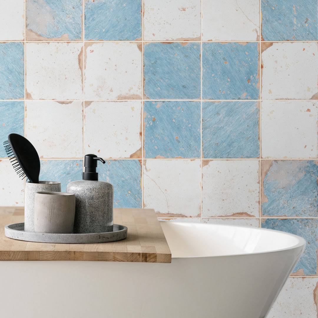 EliteTile Artisanal 13" x 13" Ceramic Field Tile in Damero Azul