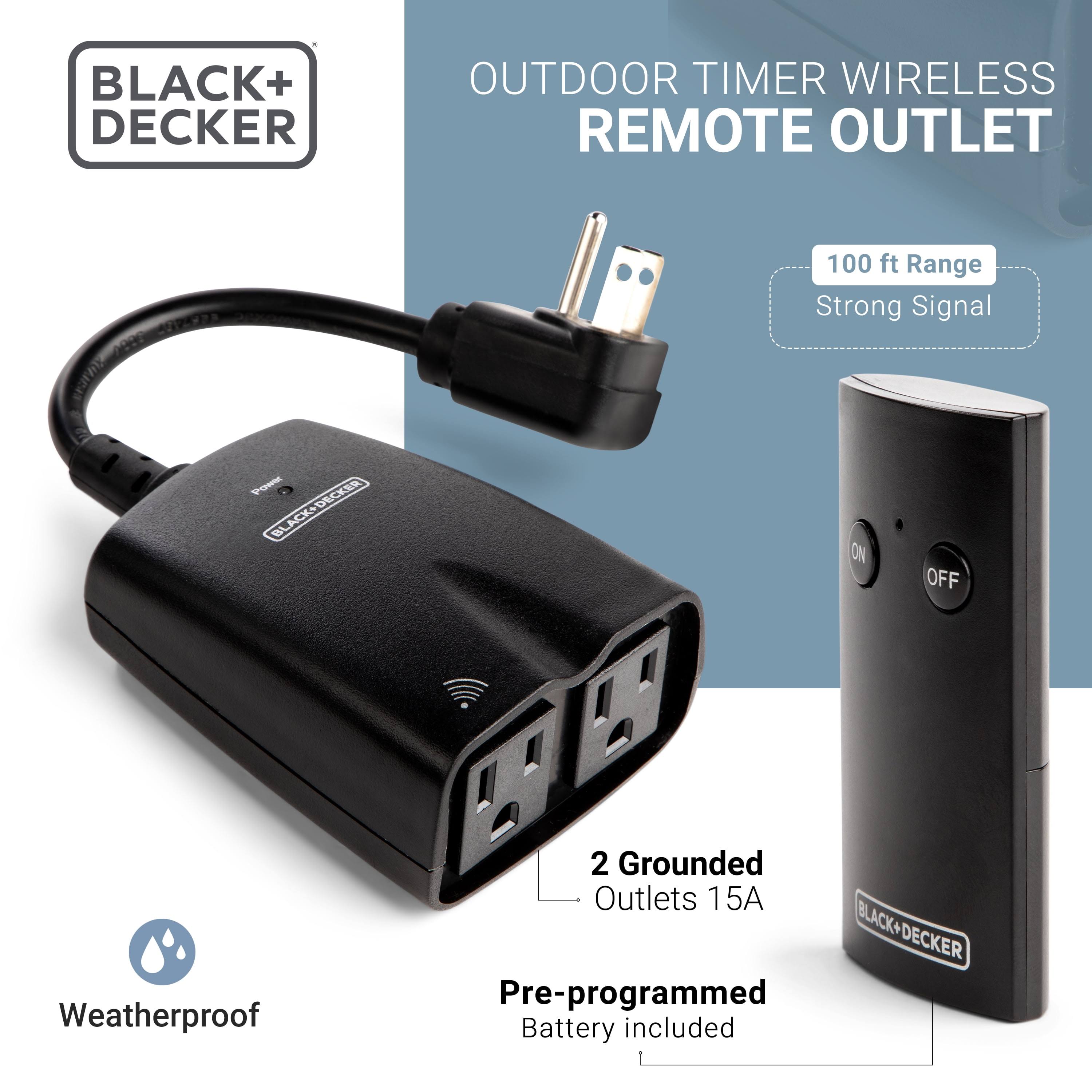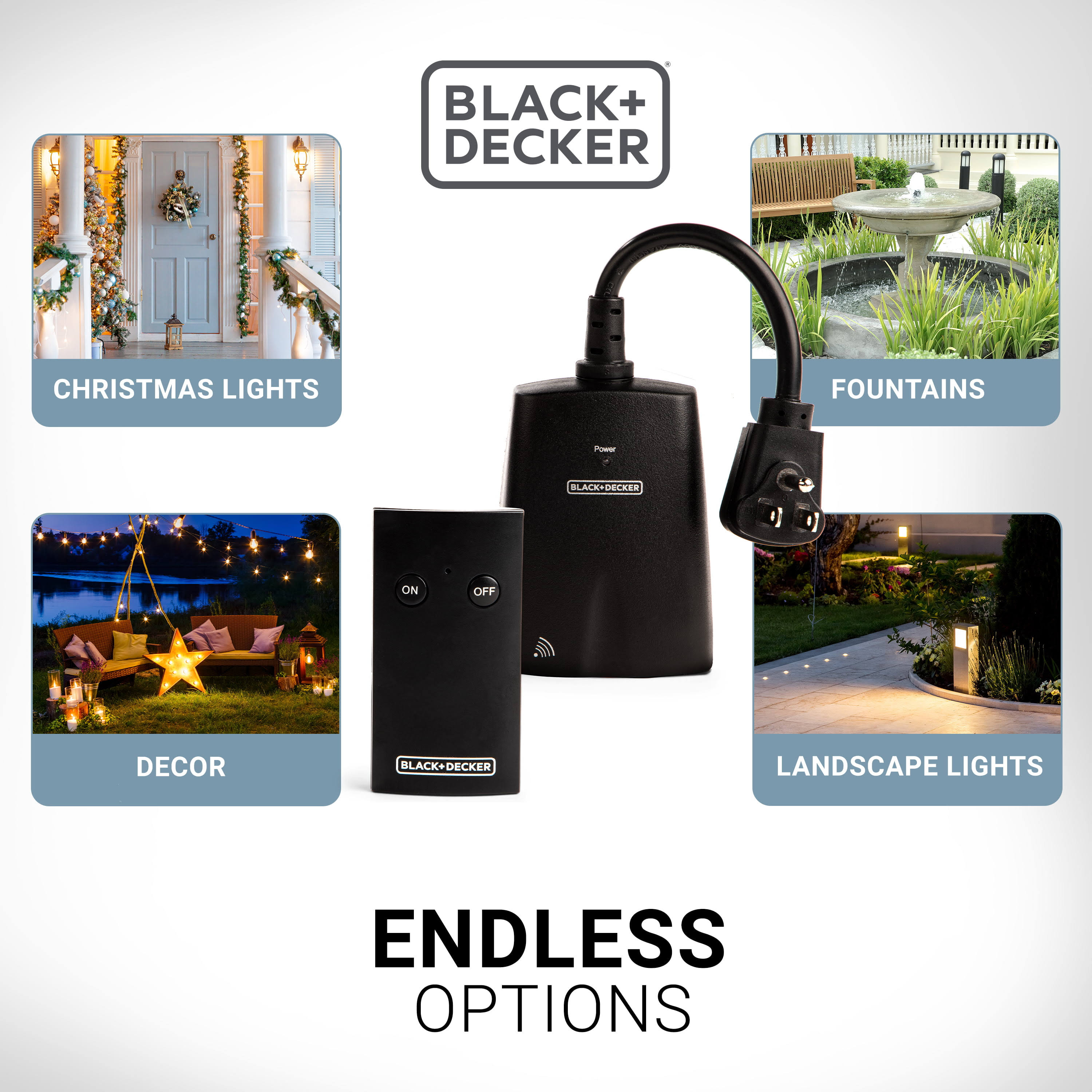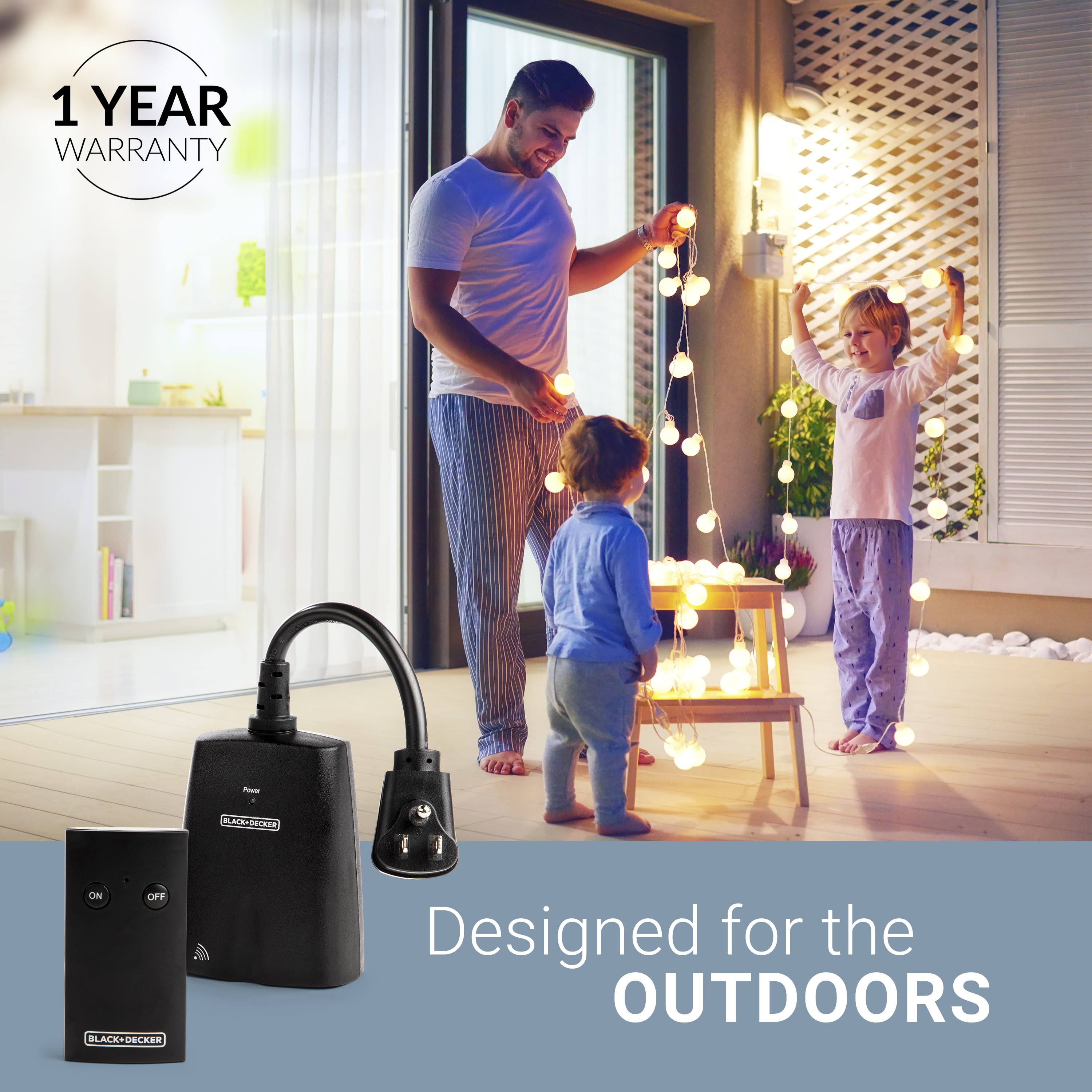 Black+decker BDXPA0010 Outdoor Wireless Outlet with Remote 2 Grounded Outlets Remote Light Switches