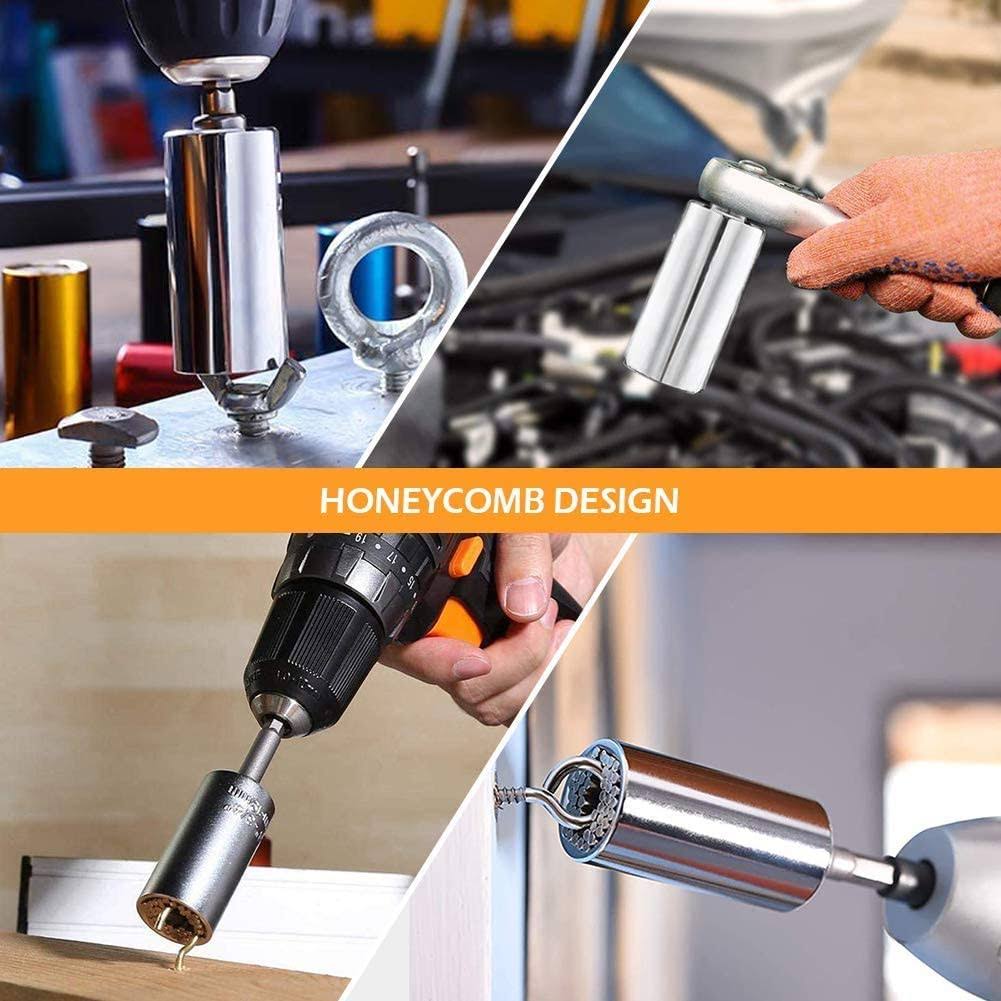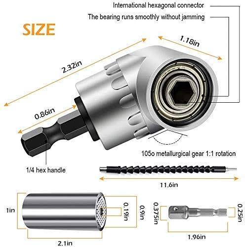 FOUUA Flexible Drill Bit Extension and Universal Socket Wrench Tool Set, 105�� Right Angle Drill Attachment, 1/4 3/8 1/2" Universal Socket Adapter Set,