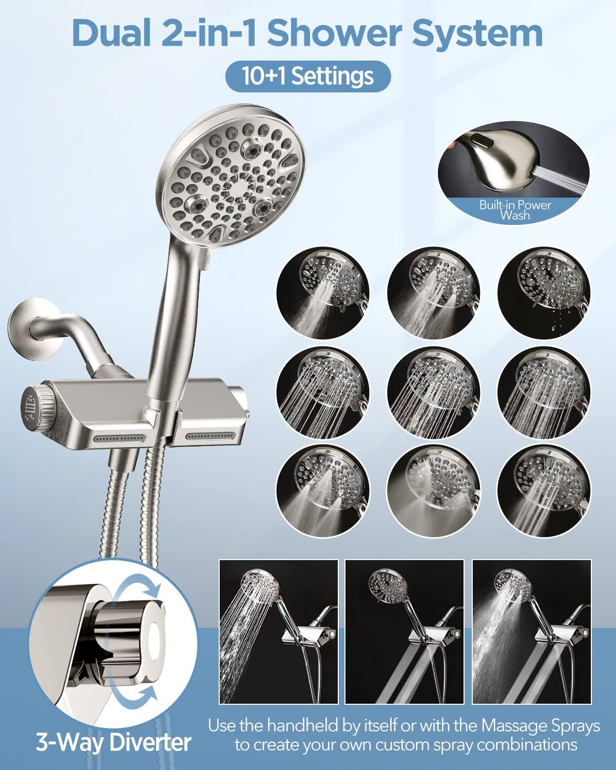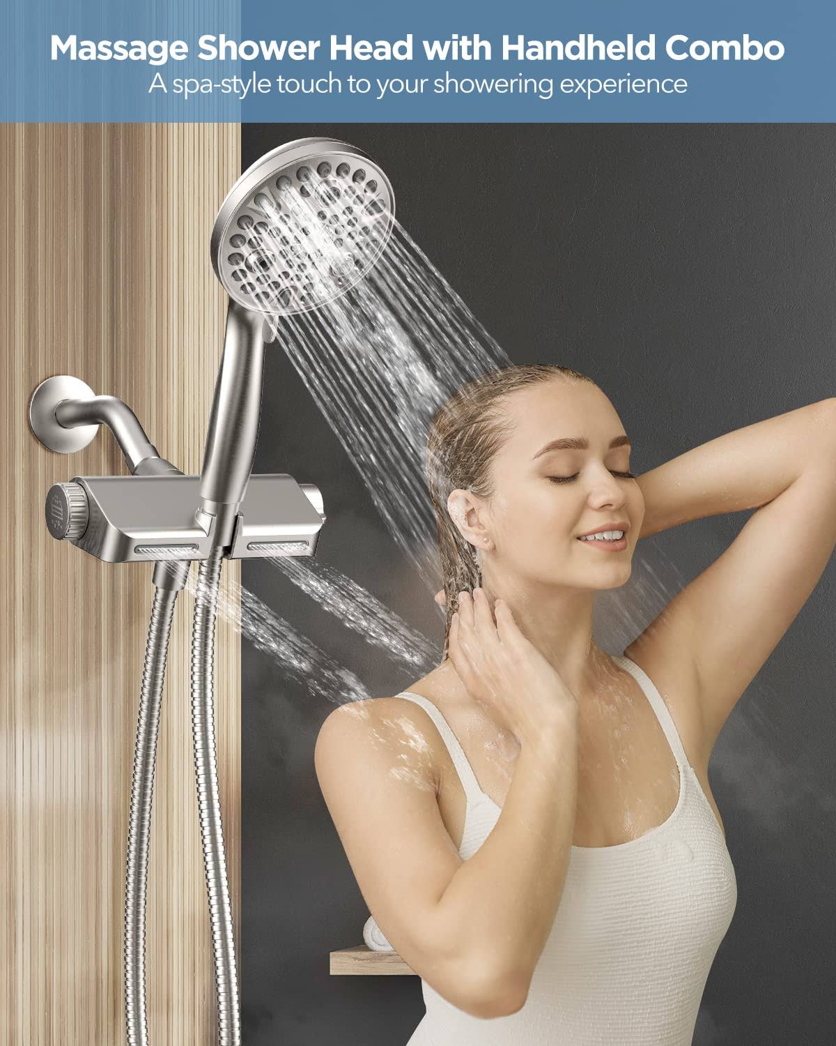MakeFit Filtered Shower Head with Handheld Combo Brushed Nickel- Dual 2-in-1 Spa System with Massage Shower Head and 10 Modes Hand Held Shower Head