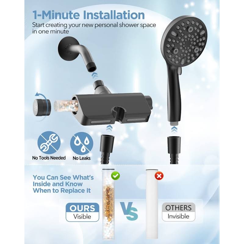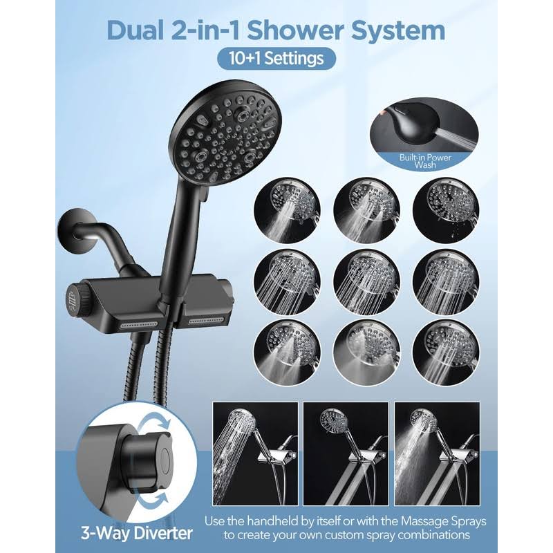MakeFit Filtered Shower Head with Handheld Combo Matte Black- Dual 2-in-1 Spa System with Massage Shower Head and 10 Modes Hand Held Shower Head,