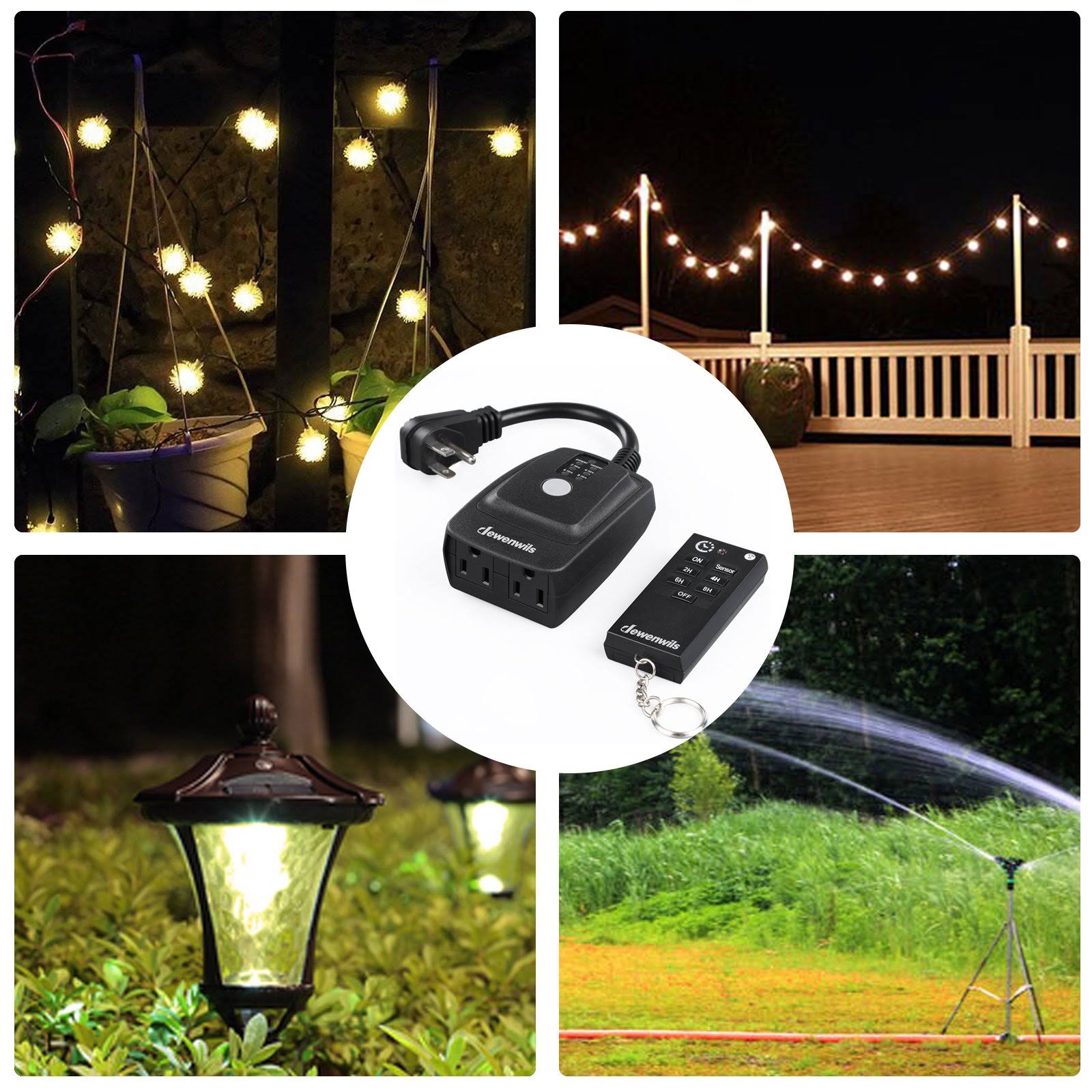 DEWENWILS Outdoor Light Sensor Timer Waterproof, Plug in Timer Switch, 100 ft 2
