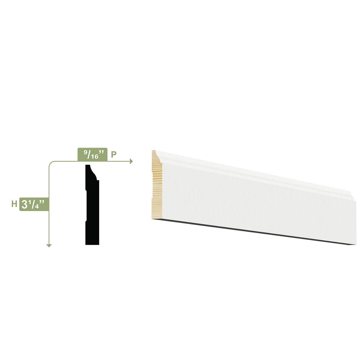 9/16-in x 3.25-in x 8-ft Primed Pine Baseboard Moulding WM623