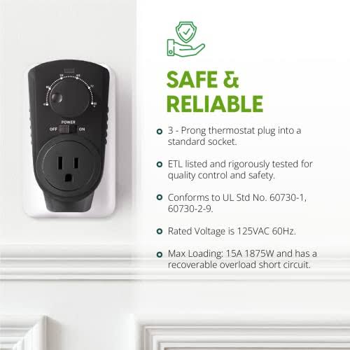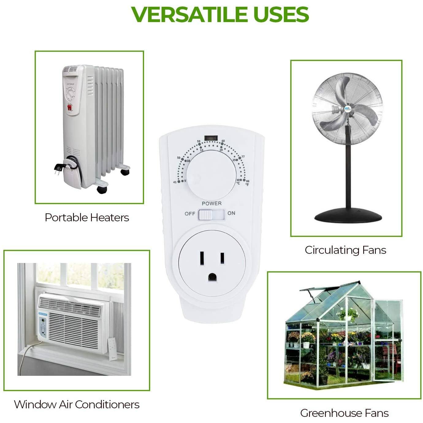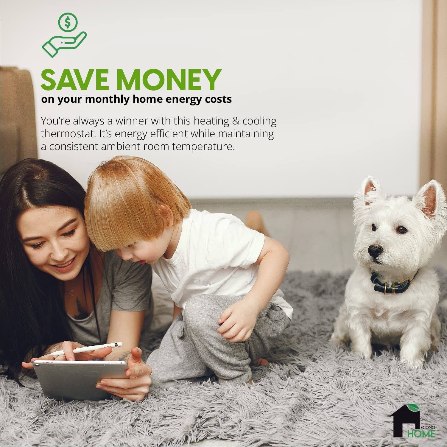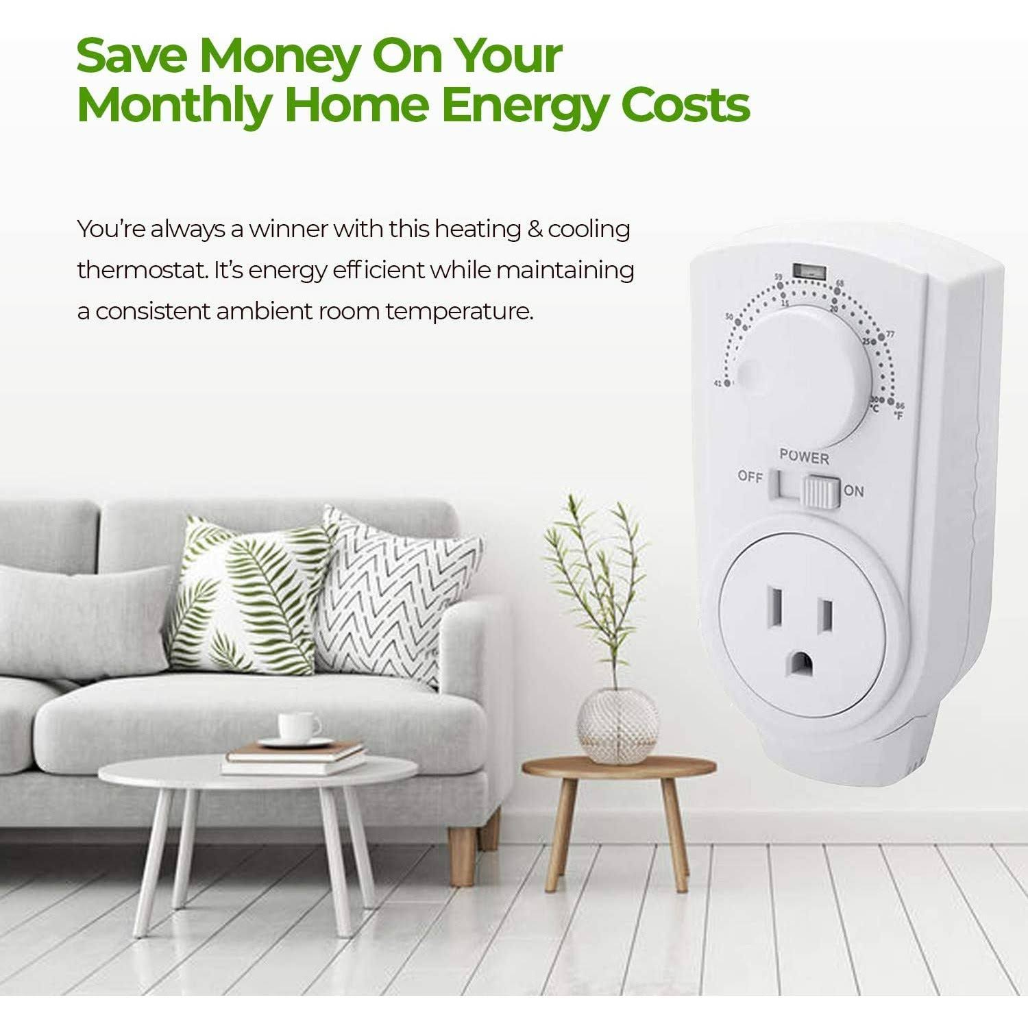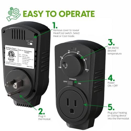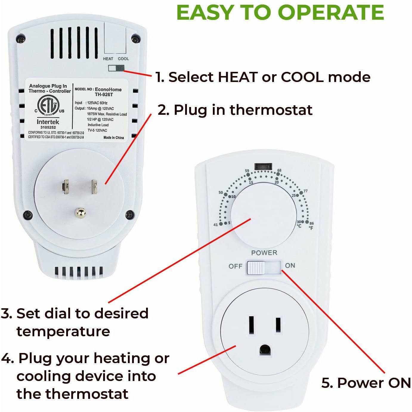 EconoHome Adjustable Thermostat- Universal Plugin Heating & Cooling Thermostat- Compatible with Most EconoHome Wall Mount Spac, Blk