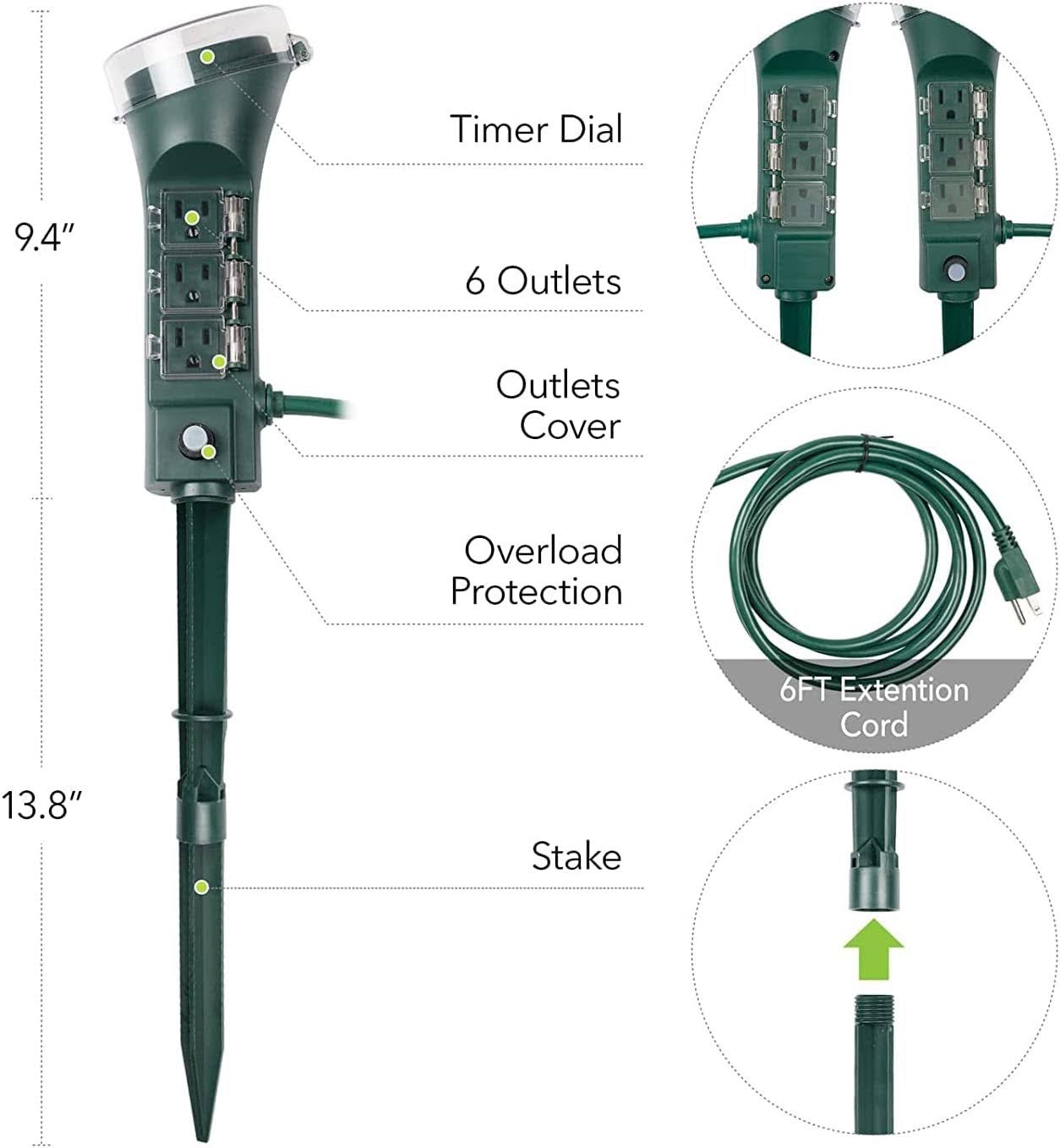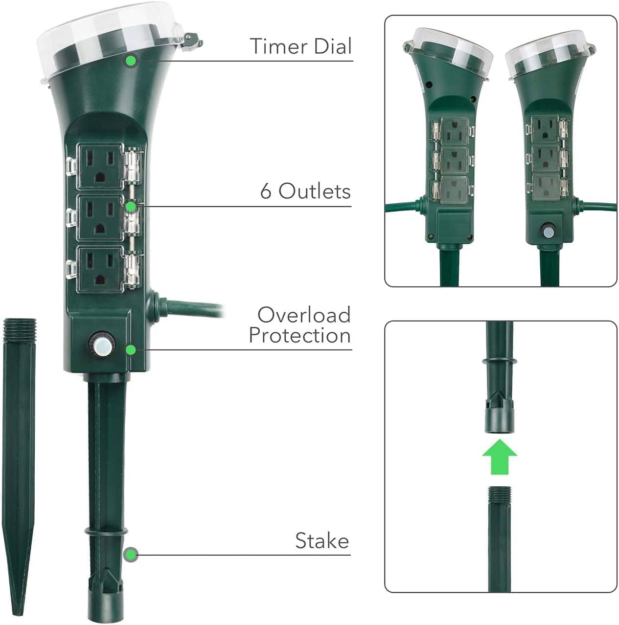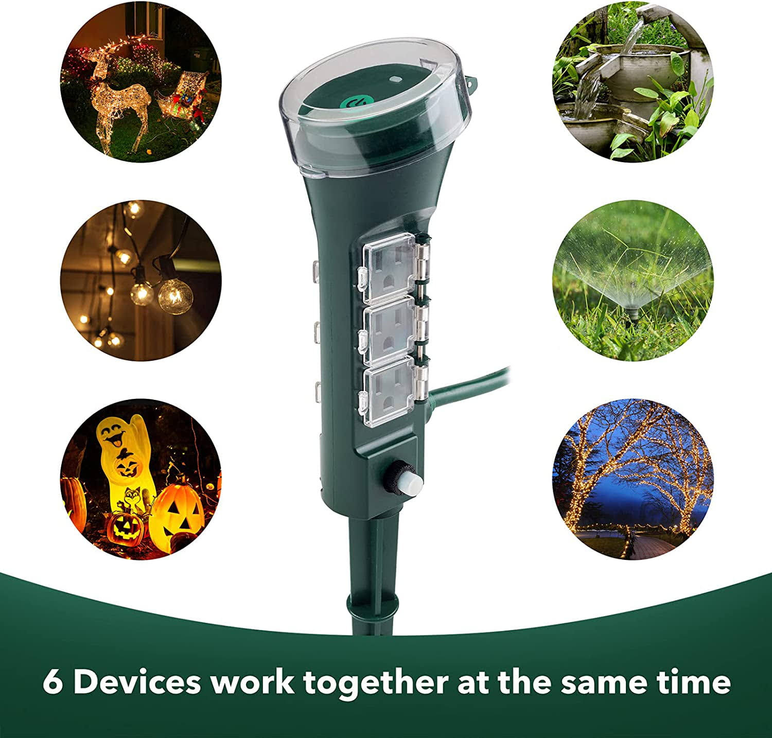 HBN Outdoor Smart Plug Waterproof WiFi Outdoor Outlet Timer with 6 Grounded Outlets, Remote & Voice Control Heavy Duty Yard Stake Plug Compatible