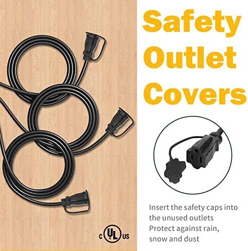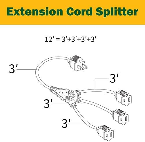 GREATIDE Outdoor Extension Cord with Multiple Outlets, 12 ft Black 1 to 3 Splitter Extension Cords, 16/3 SJTW Weatherproof Wire for Christmas