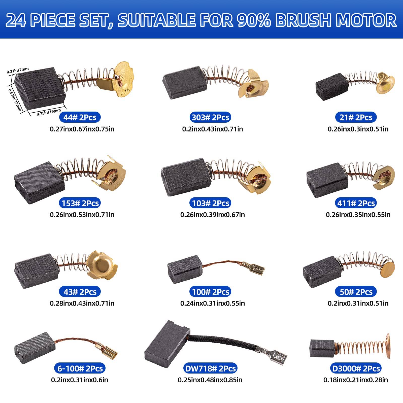 BZRR Carbon Motor Brush, 24pcs Power Tool Replacement Parts 12 Different Specifications of Carbons Para Are Suitable for Different Types of Carbon