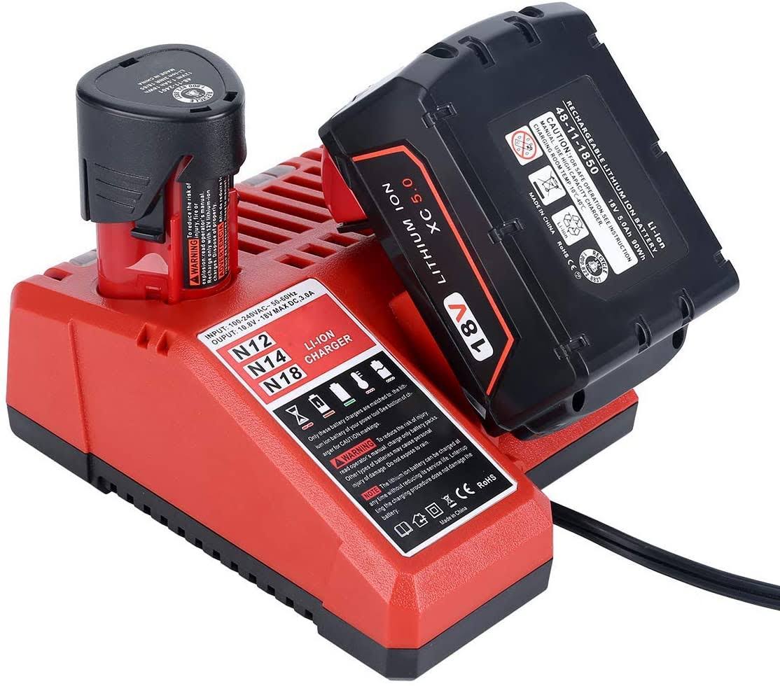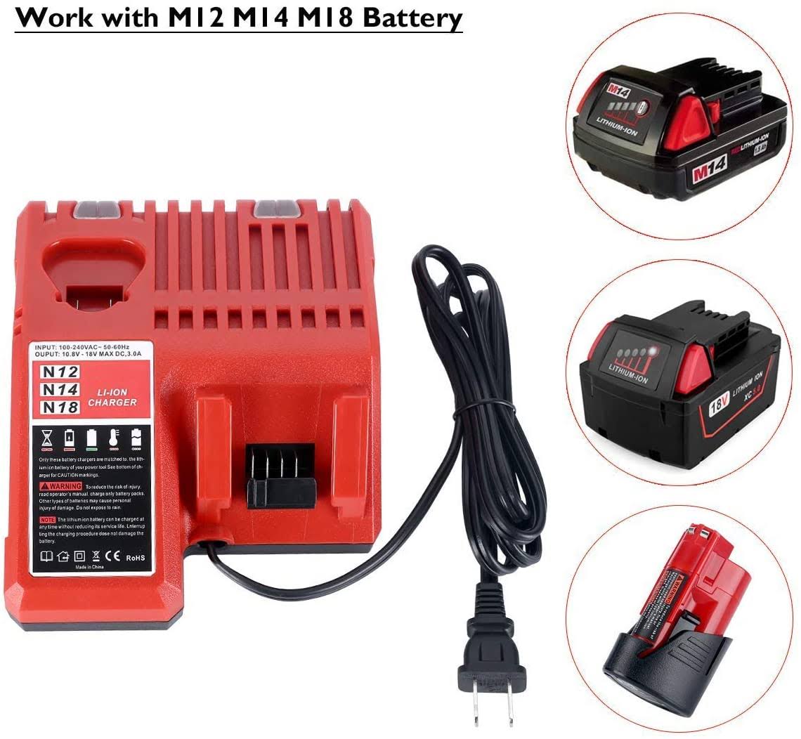 Epowon M18 & M12 Rapid Charger Replacement for Milwaukee 48-59-1812 12V&18V XC Lithium Ion Battery 48-11-1850 48-11-1840 48-11-1815