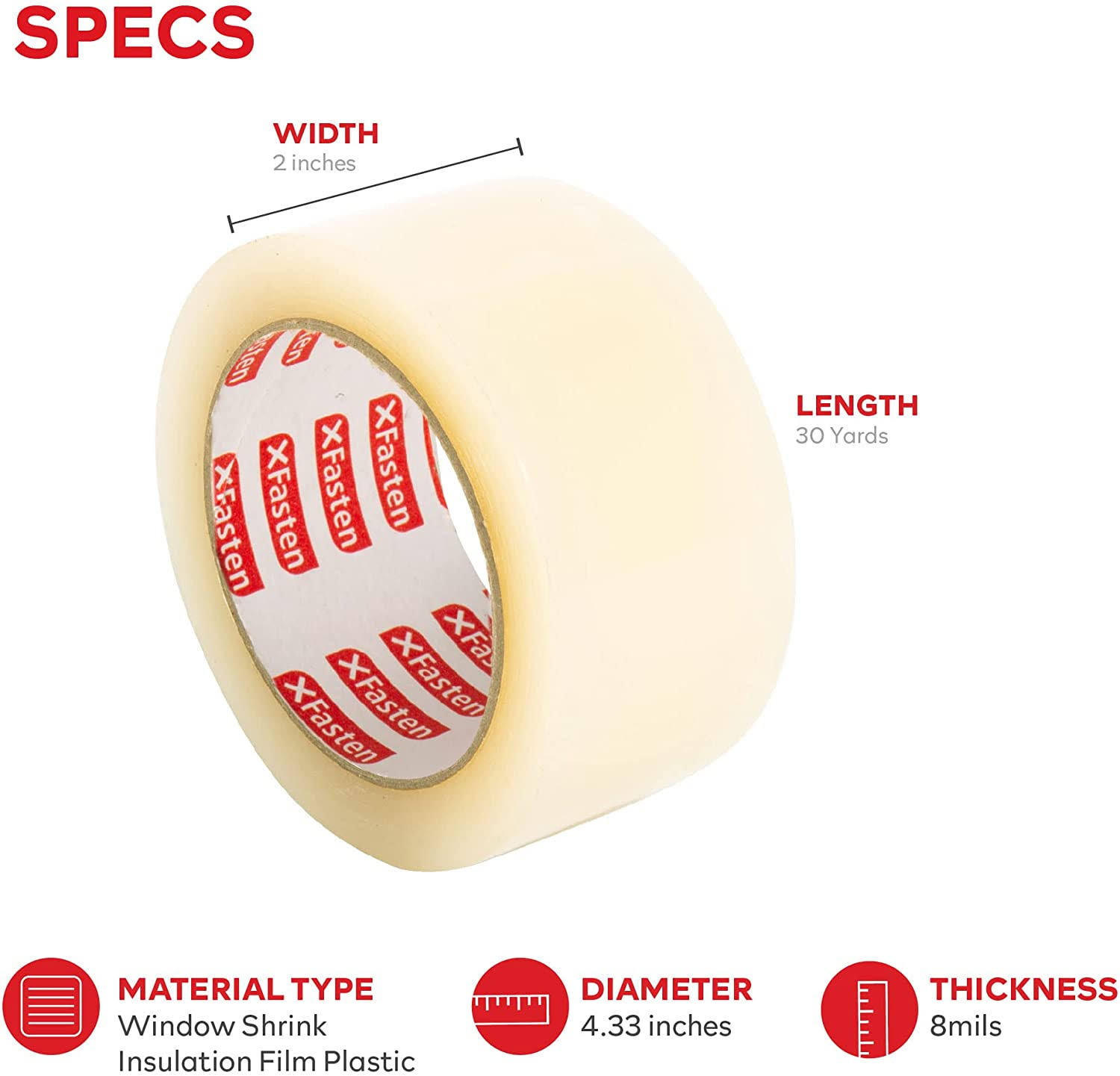 XFasten Transparent Window Weather Sealing Tape, 2-Inch x 30 Yards, Clear Window Draft Isolation Sealing Film Tape, No Residue