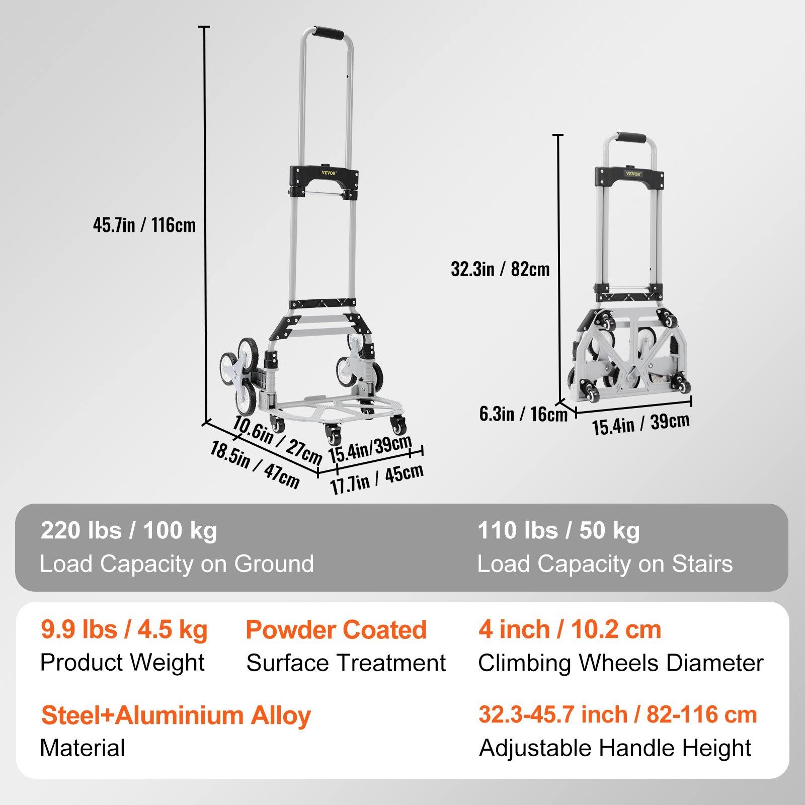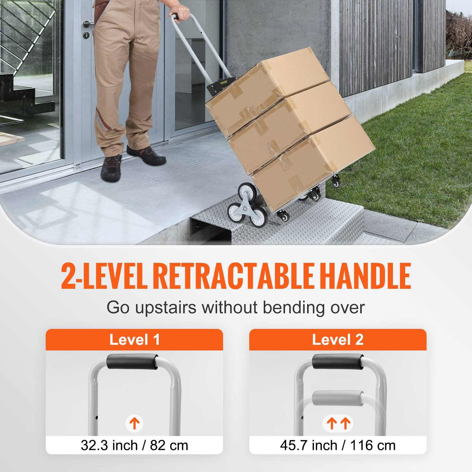 VEVOR 220 lbs. Foldable Stair Climbing Cart Hand Truck Stair Climber with Adjustable Handle for Warehouse, Airport