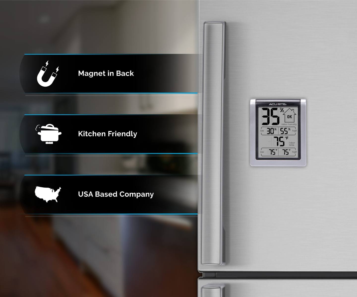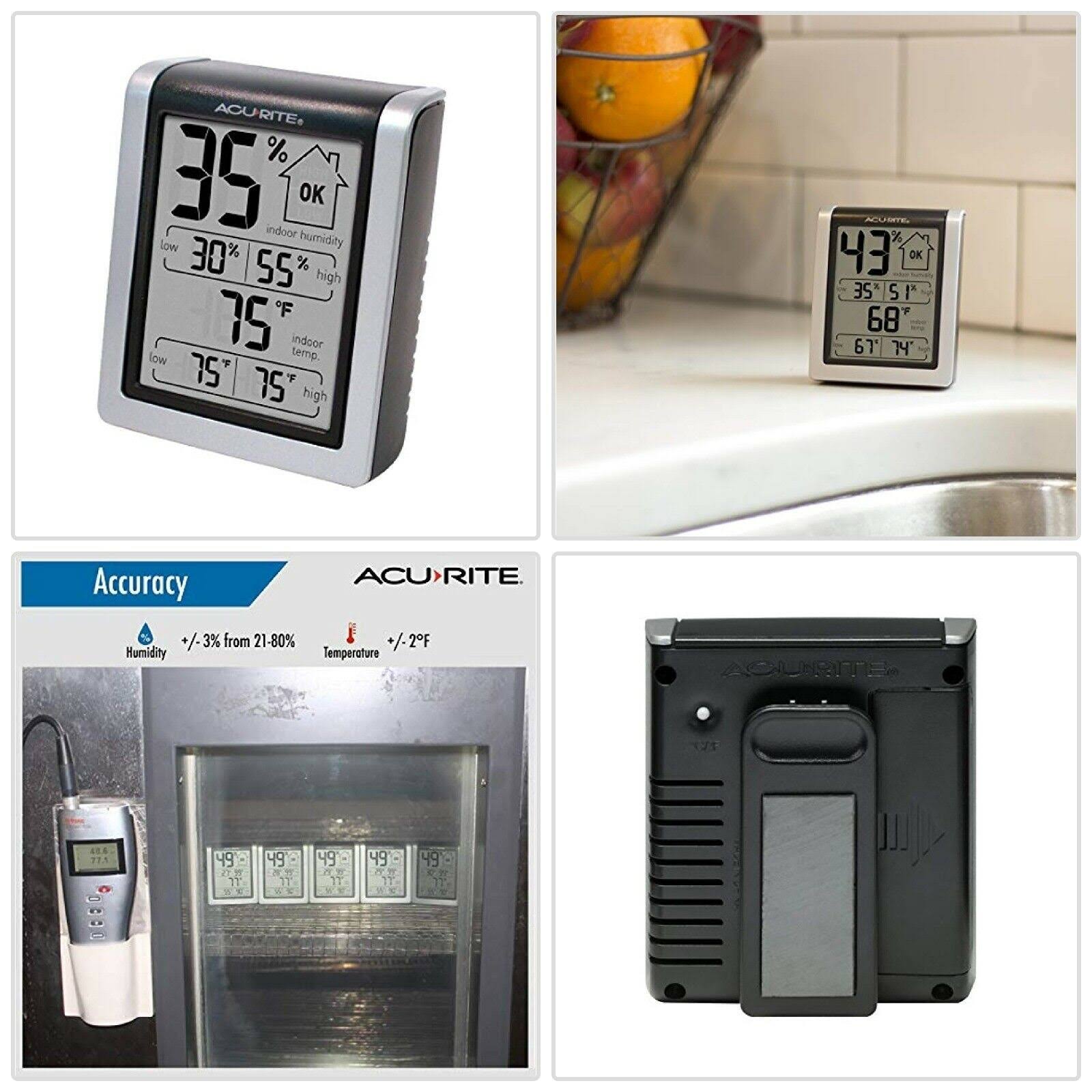 Acurite 00613 Digital Hygrometer & Indoor Thermometer Pre-Calibrated Humidity Gauge, 3" H x 2.5" W x 1.3" D, Black