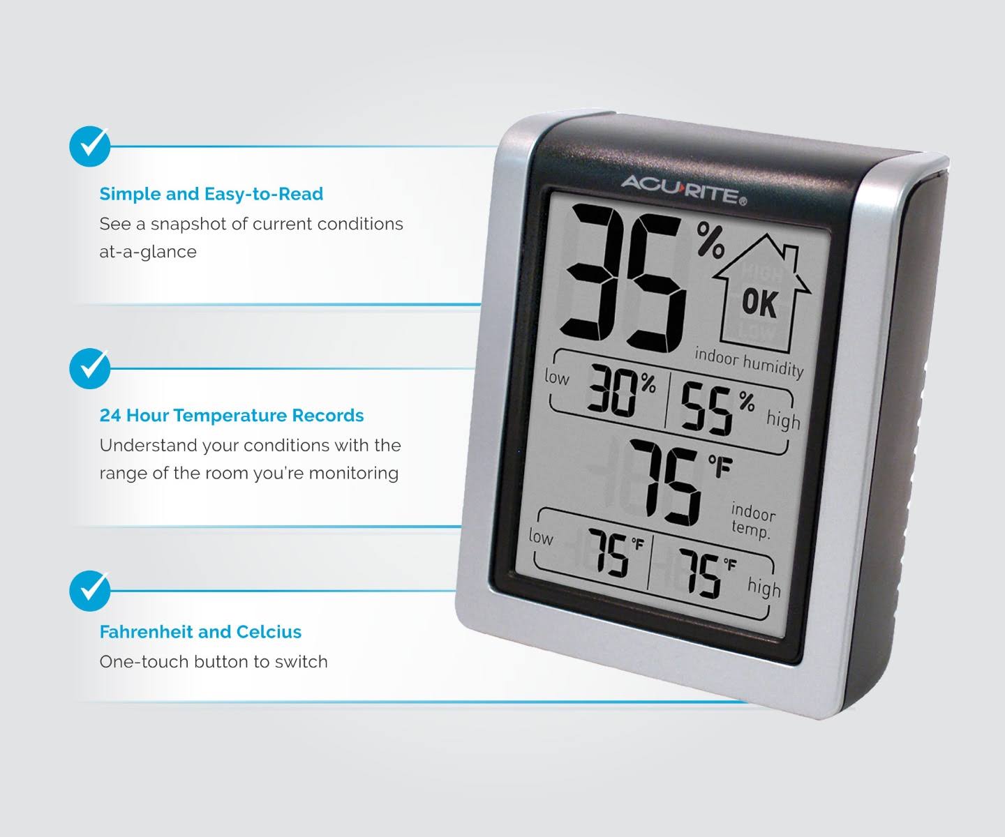 Acurite 00613 Humidity Monitor with Indoor Thermometer, Digital Hygrometer