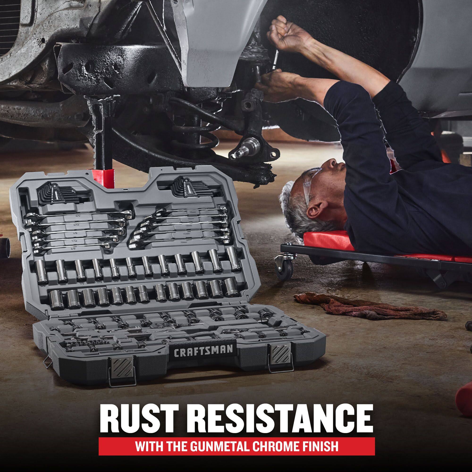Craftsman Overdrive 121-Piece Standard (SAE) and Metric Gunmetal Chrome Mechanics Tool Set with Hard Case | CMMT99121L