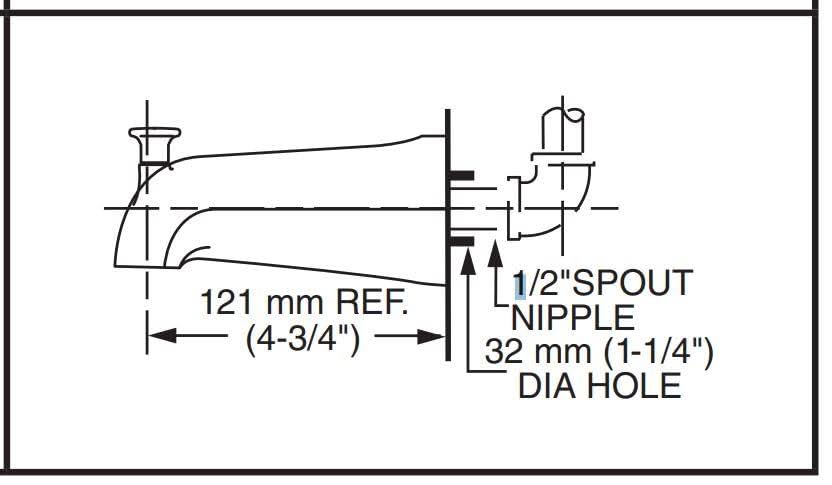 American Standard 8888026.002 Bath Slip-On Diverter Tub Spout 4 in Polished Chrome (FOR 1/2" Copper Water Tube)