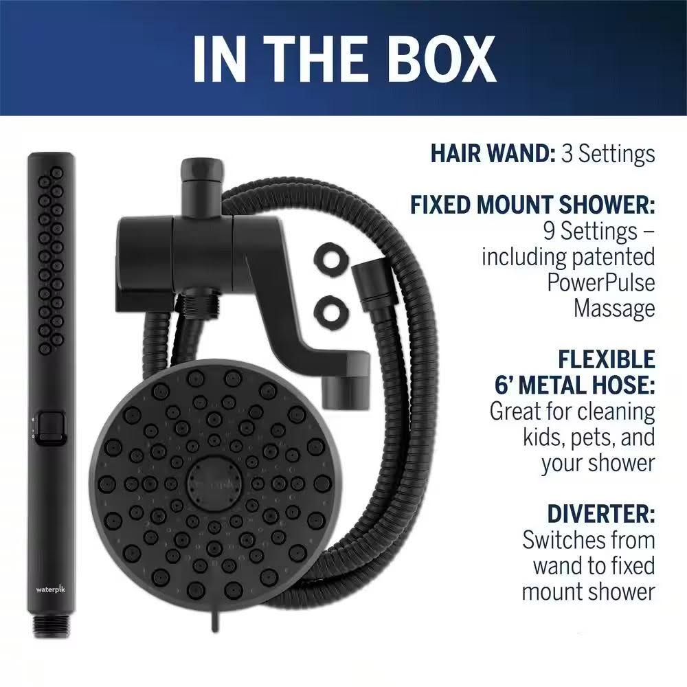Waterpik 12-Spray High Pressure 1.8 GPM 5 in. Wall Mount Dual Shower Head and Handheld Shower Head in Matte Black