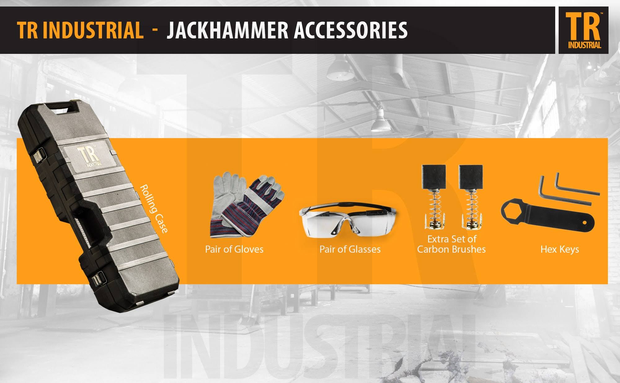 TR Industrial TR89100W 11 Amp 31 lbs. Demolition Jack Hammer with Point, Flat and Spade Chisels