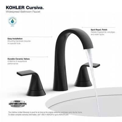 Kohler Cursiva 8 in. Widespread 2-Handle Bathroom Faucet in Matte Black