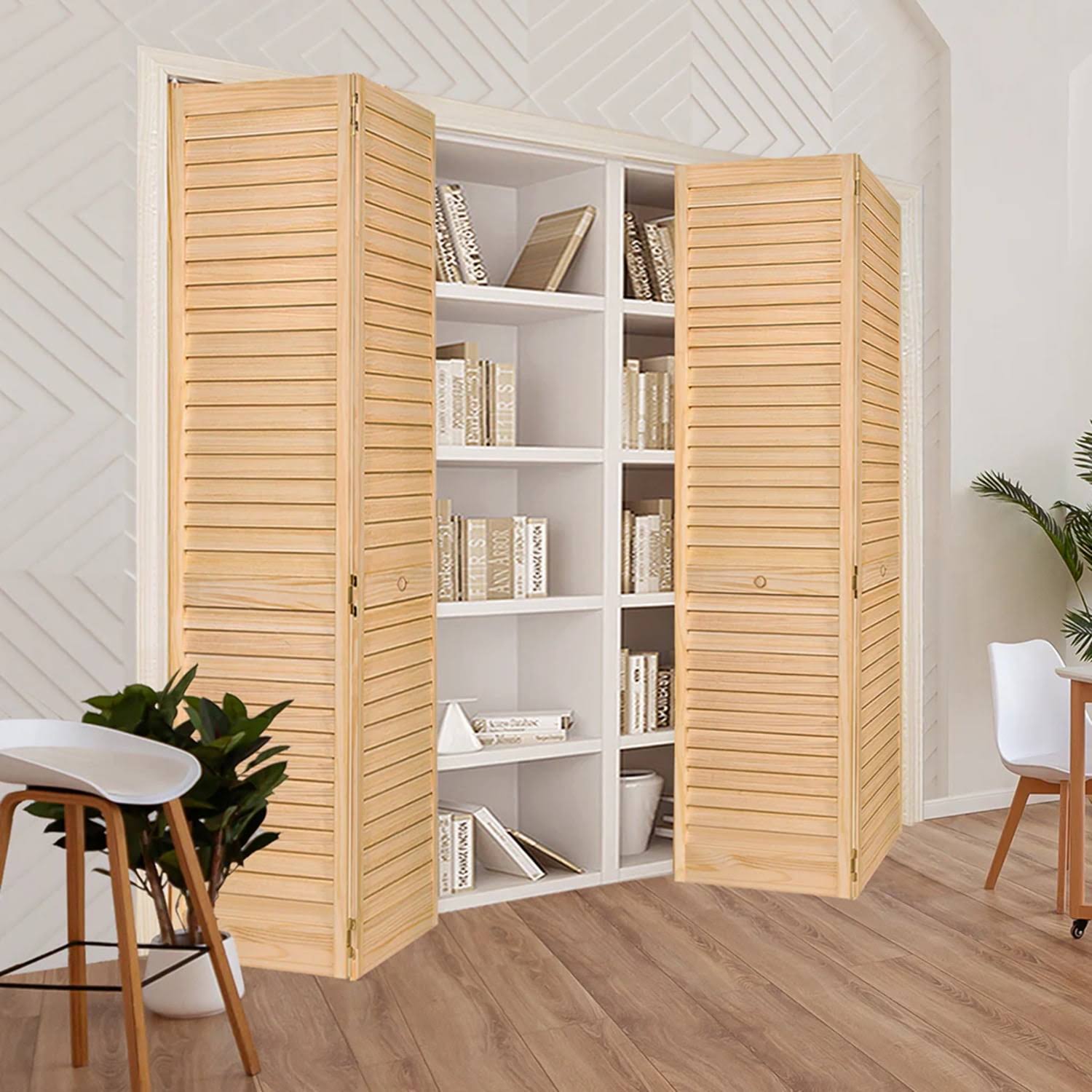 Kimberly Bay Louvered Wood Unfinished Plantation Bi-Fold Door