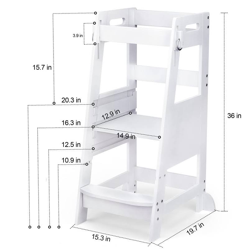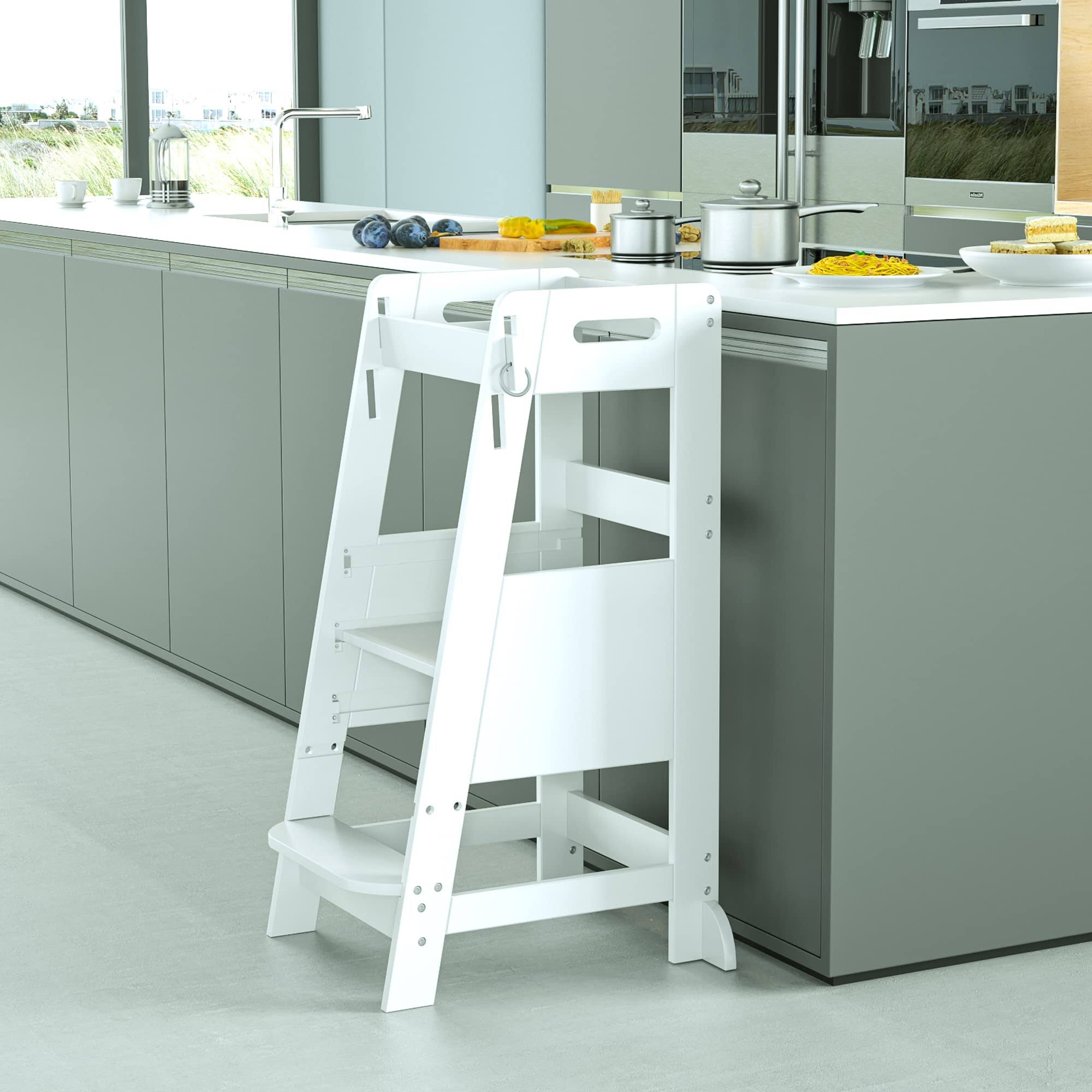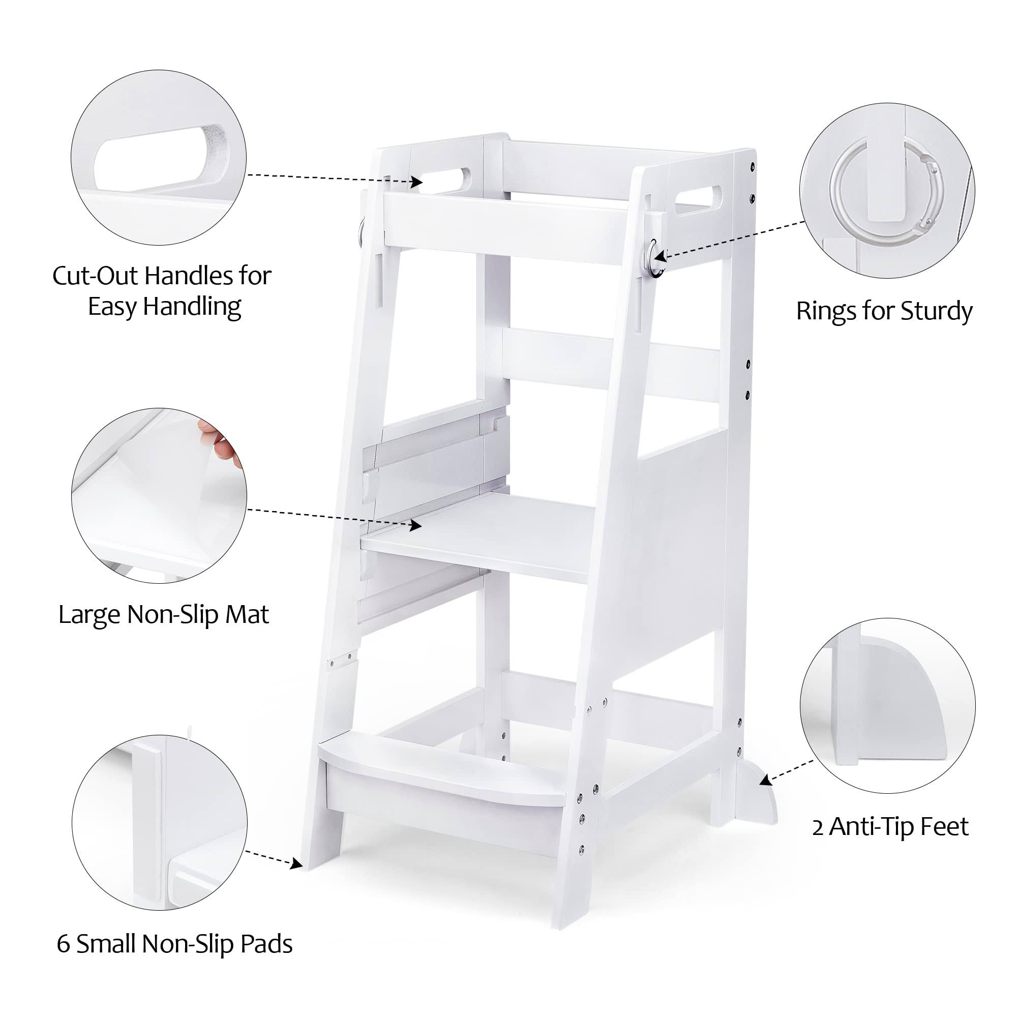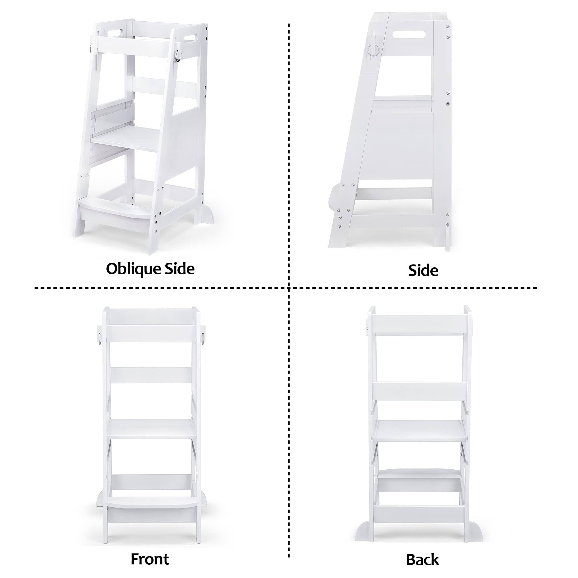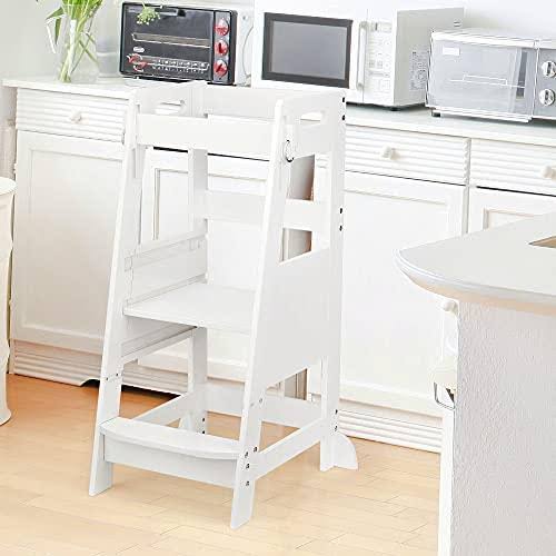 TOETOL Bamboo Toddler Kitchen Step Stool White Helper Standing Tower Height Adju