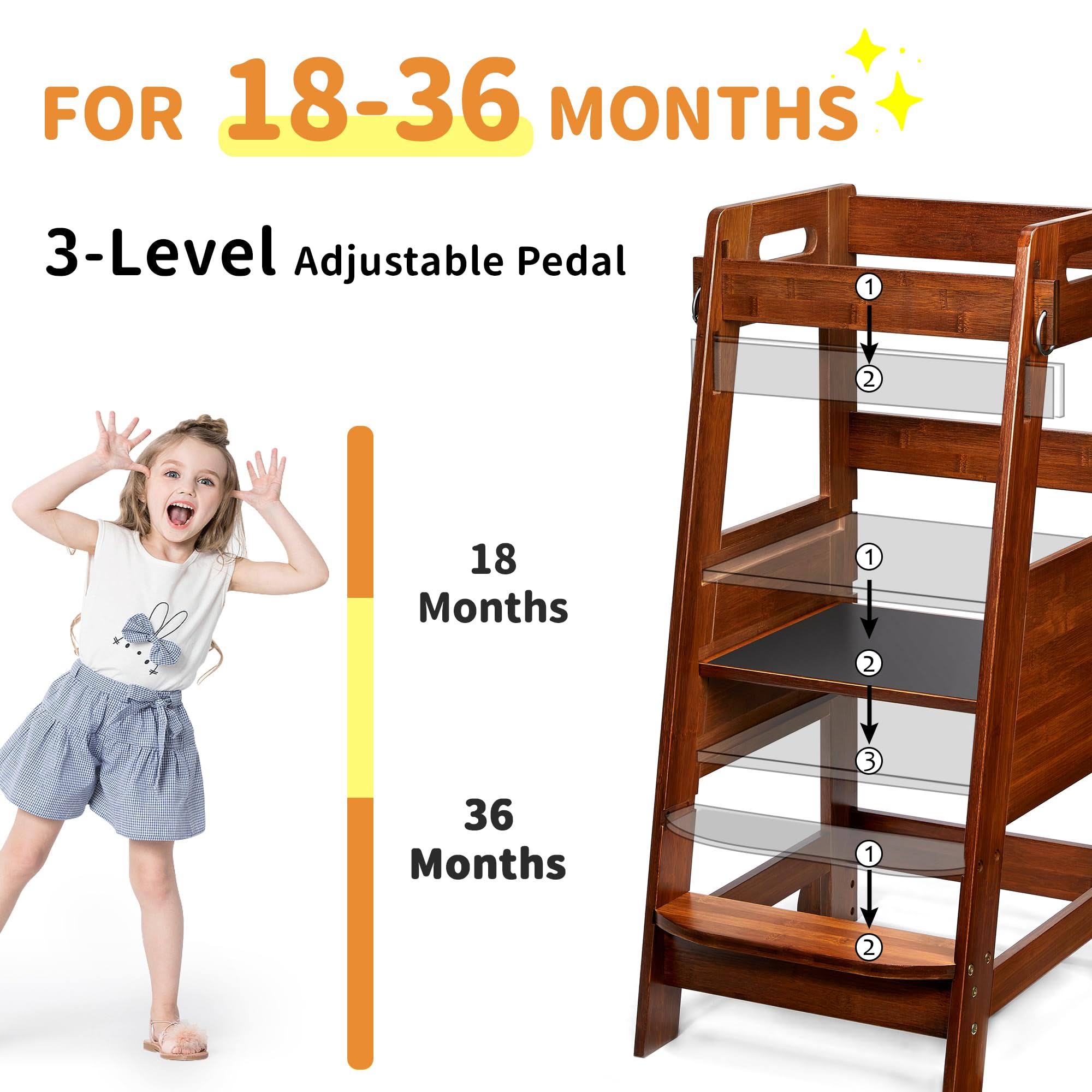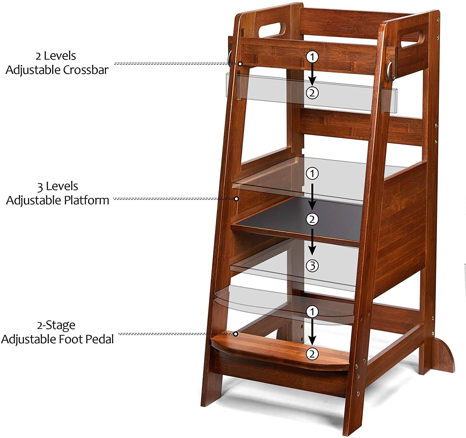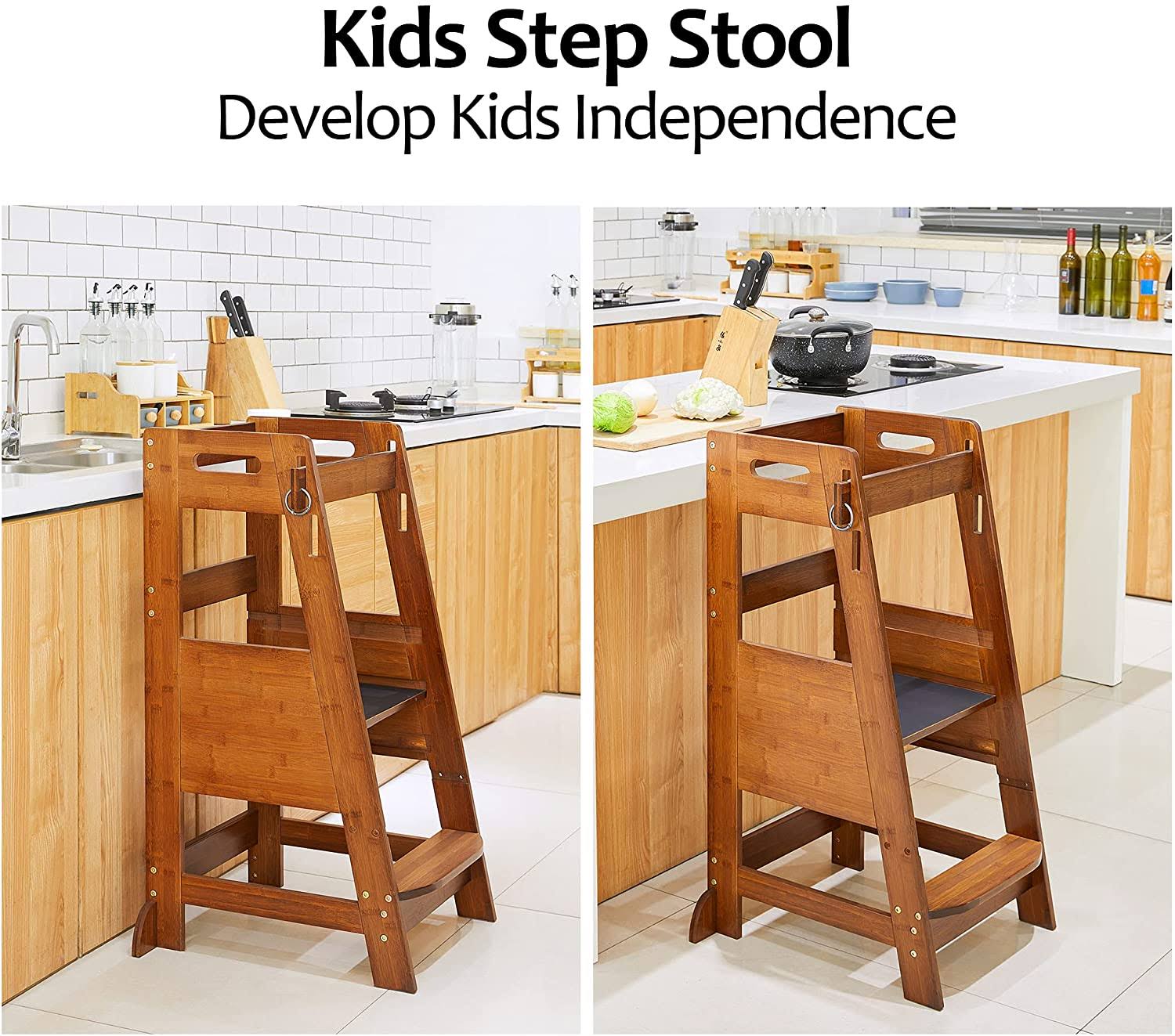 TOETOL Bamboo Toddler Kitchen Step Stool Helper Standing Tower Height Adjustable