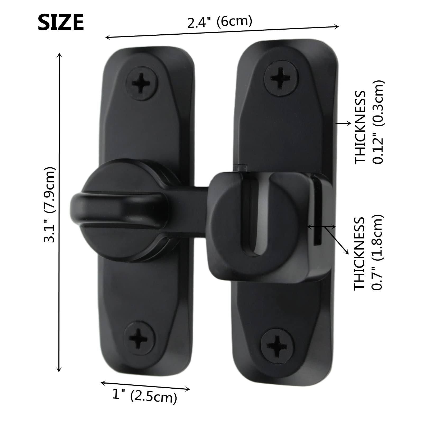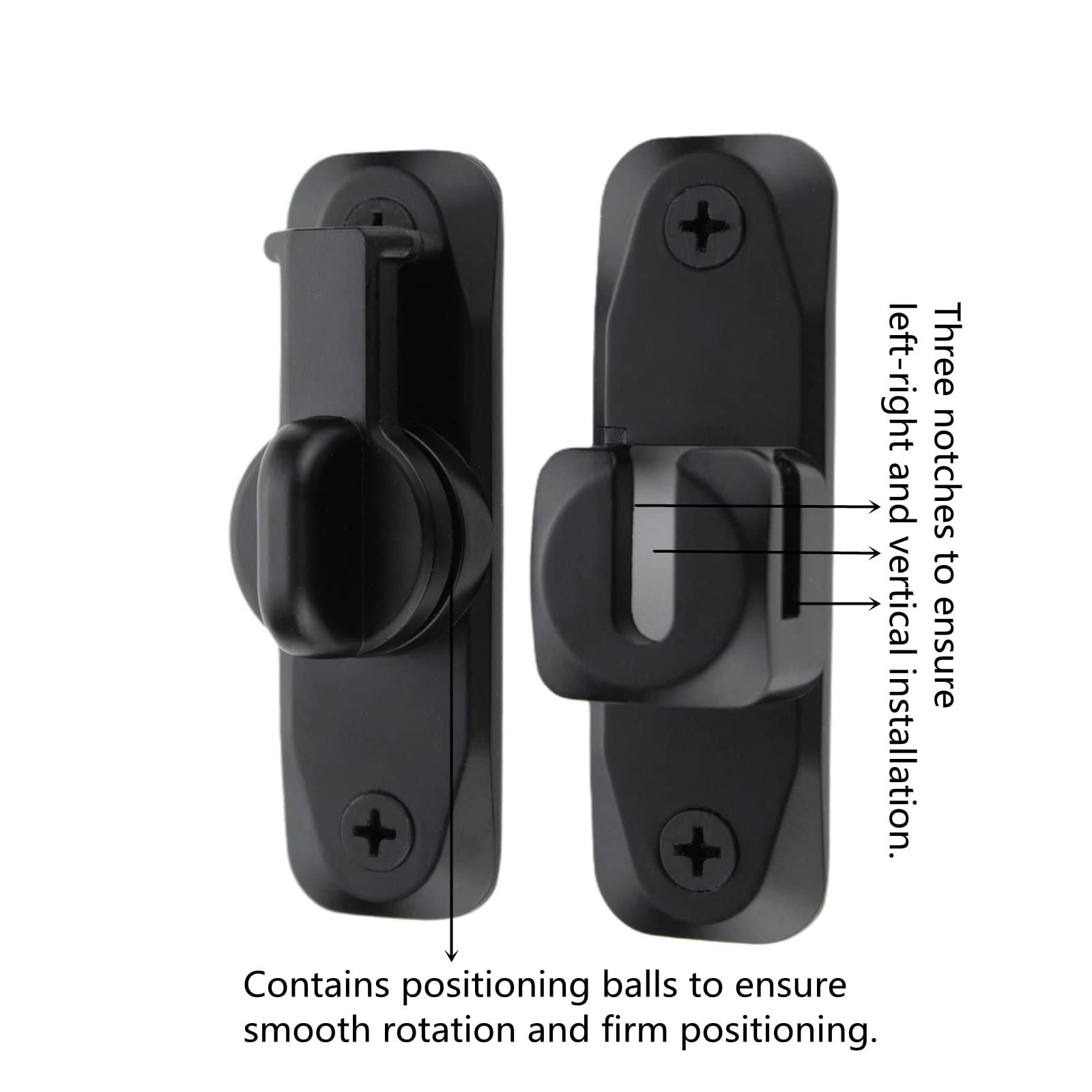 FIREFLYWEB Flip Door Latch Black 180 Degree Heavy Duty Bar Gate Latches Safety Door Lock, Bold Thickened Anti-rust Newest Design (90-180Filp Door