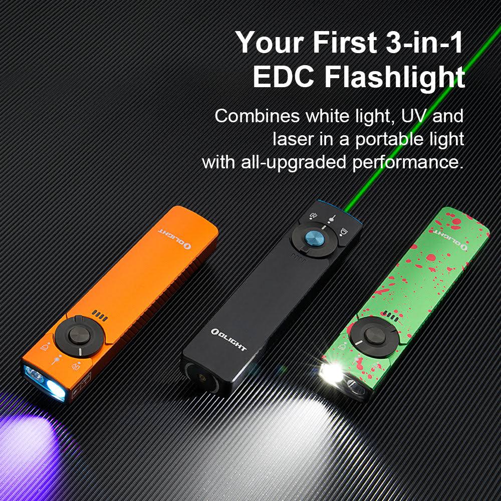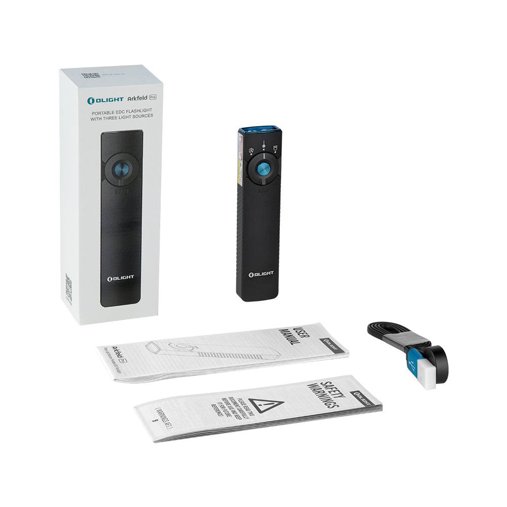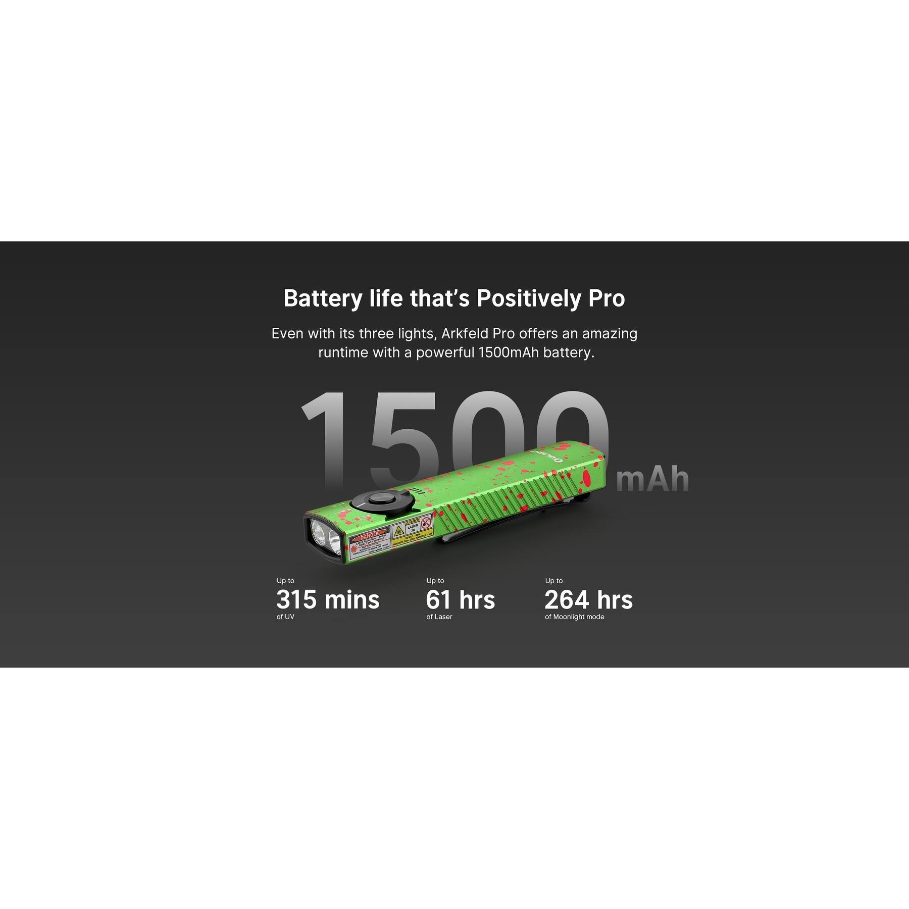 Olight Arkfeld Pro 1300 Lumen Rechargeable Flashlight with UV Light & Laser- Black- Battery