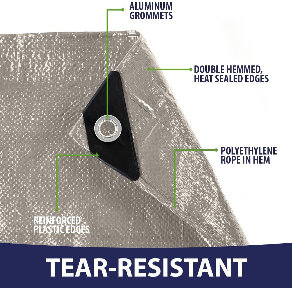 Rugged Rhino All Weather 100% Waterproof Heavy Duty Tarp, 5 Mil UV Temperature Resistant Tarps, High Durability Multipurpose Cover, for Home Outdoor