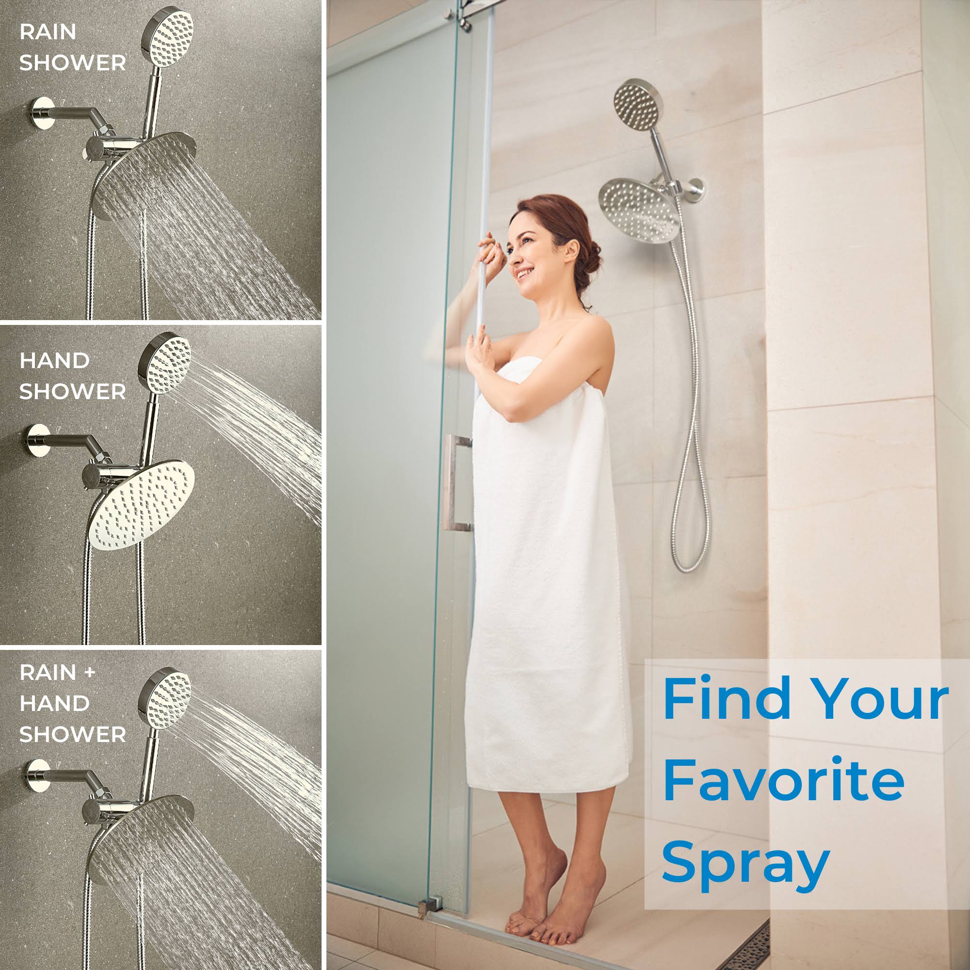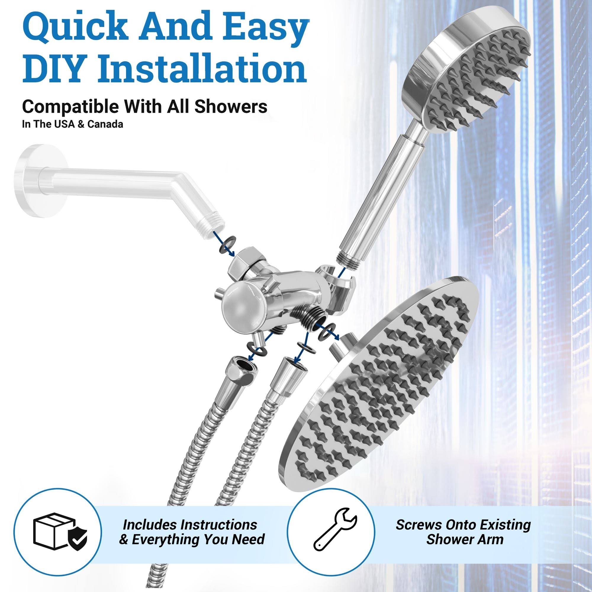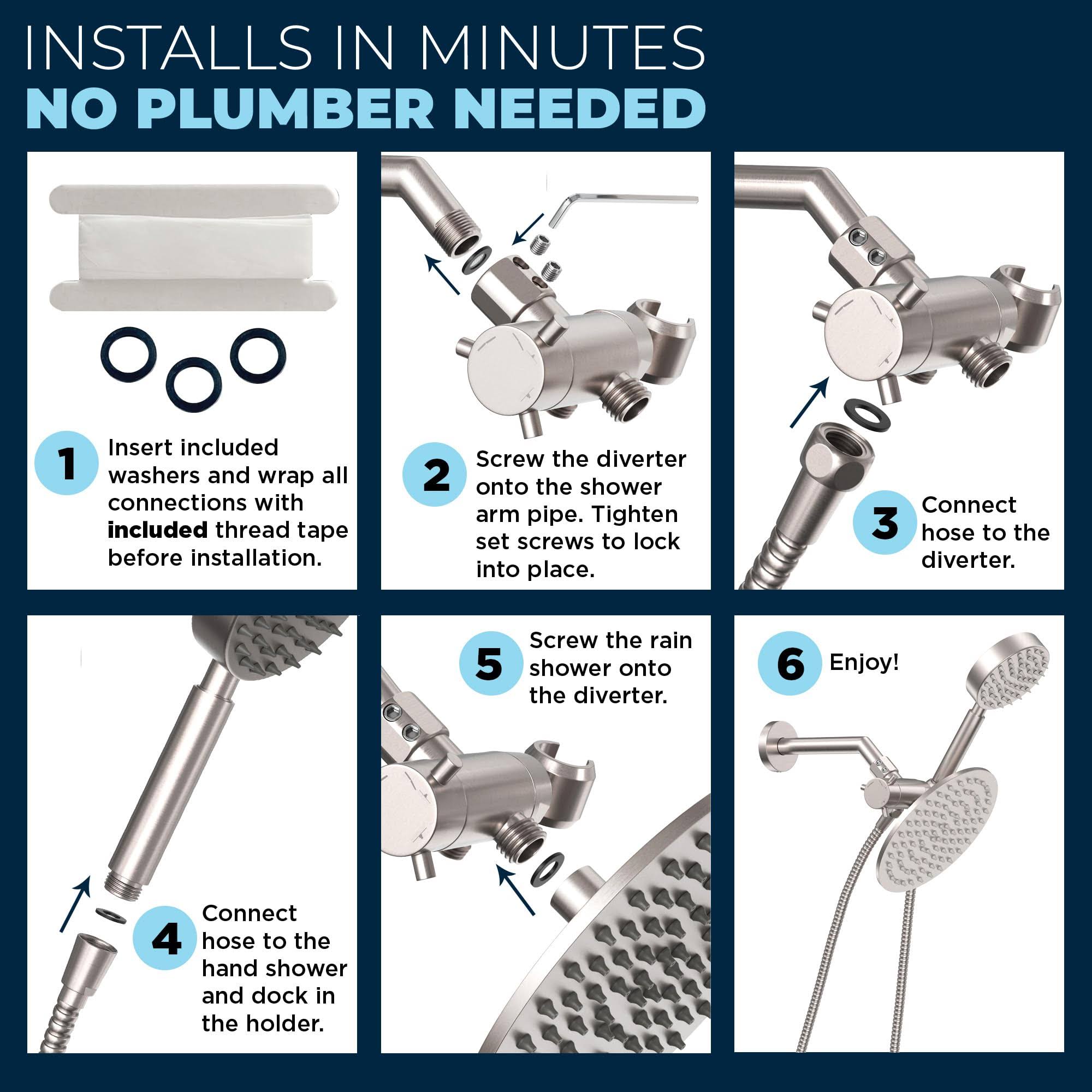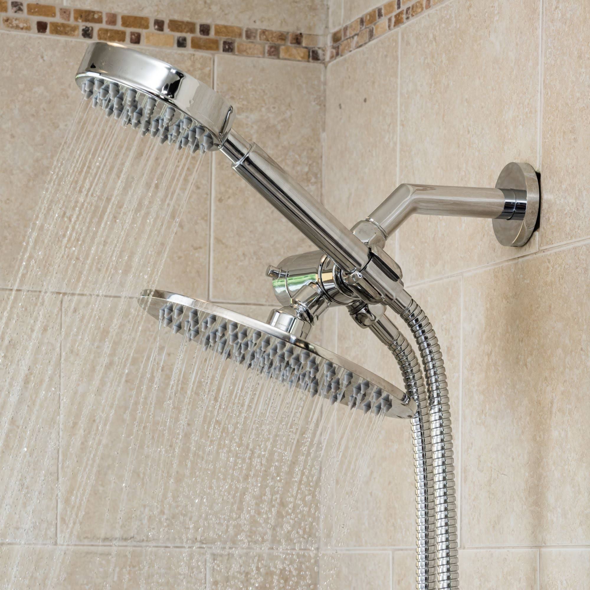 All Metal Dual Shower Head Combo Brushed Nickel- 8 inch Rainfall High Flow Shower Head & Handheld Shower Head High Pressure with Hose 6ft- Luxurious
