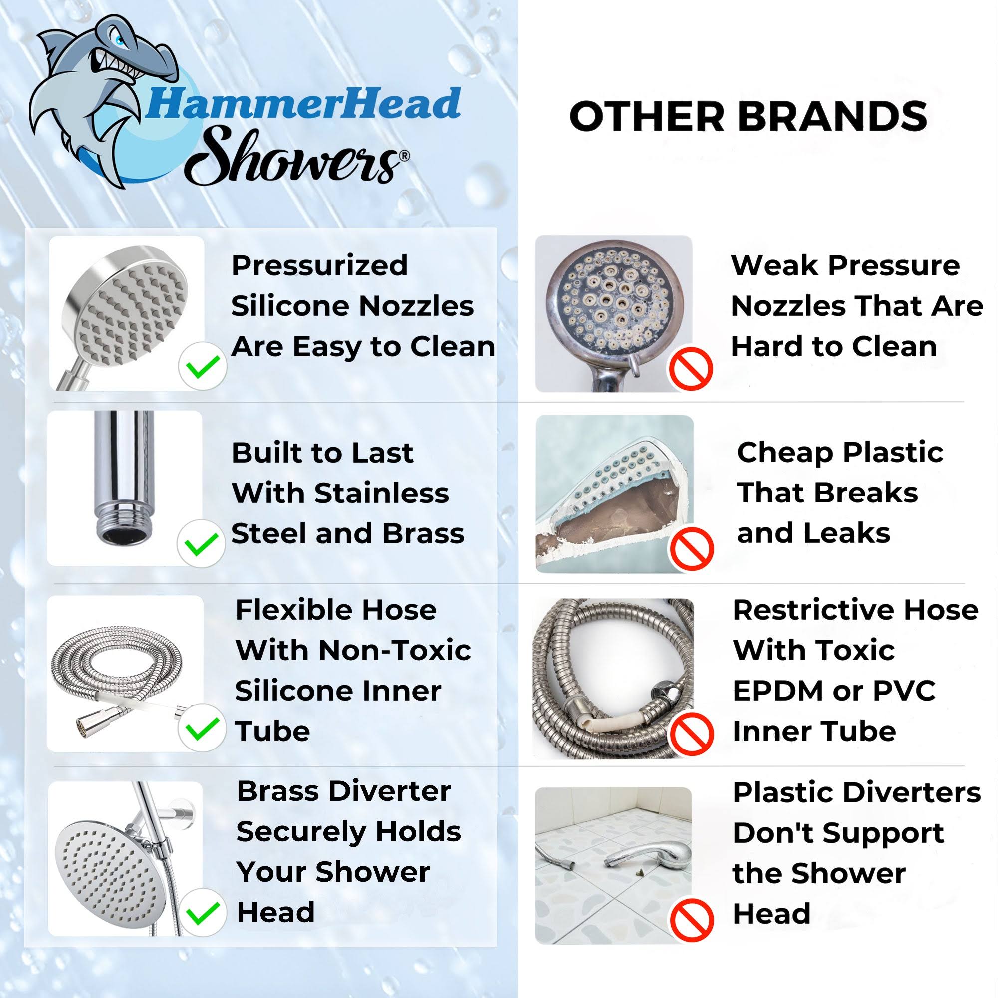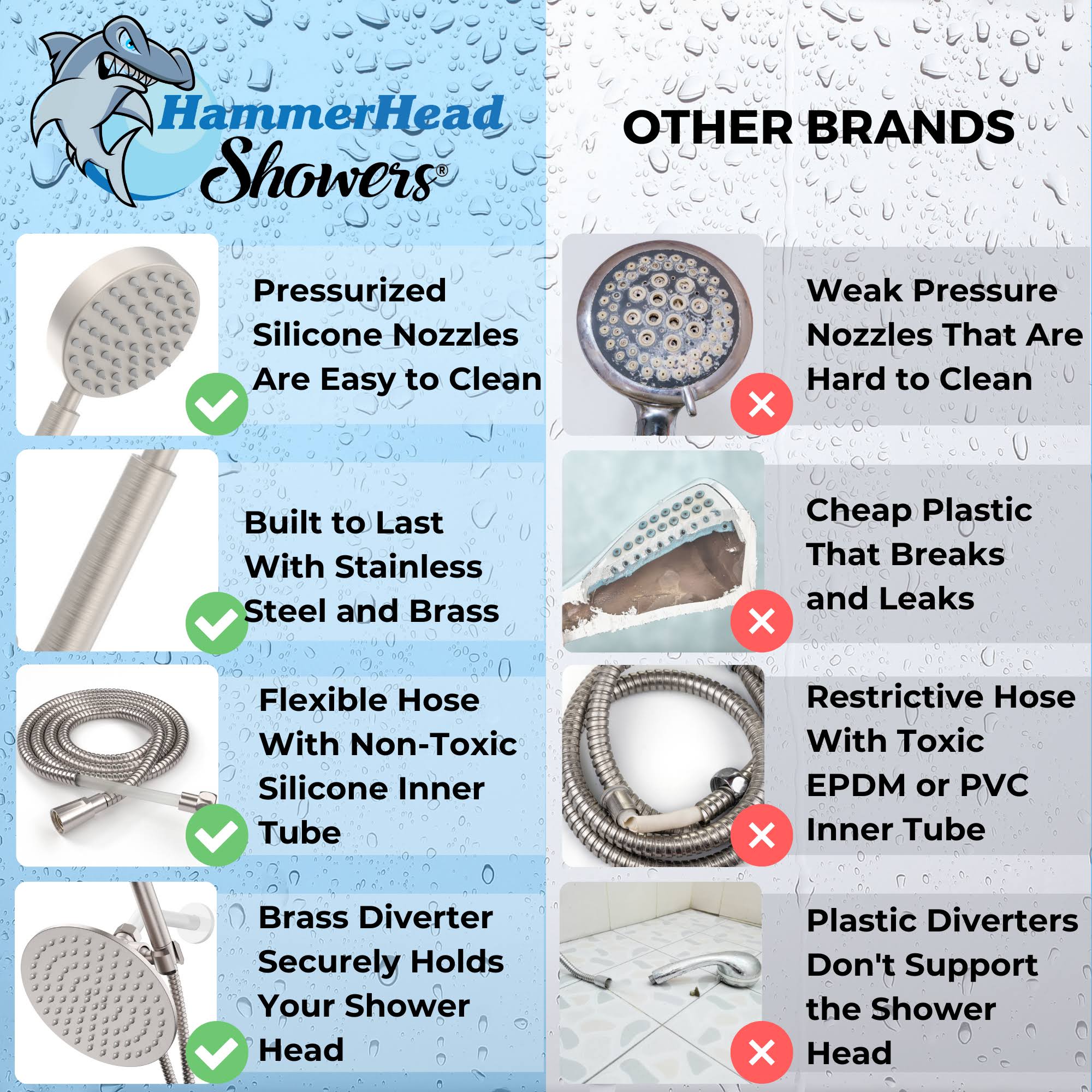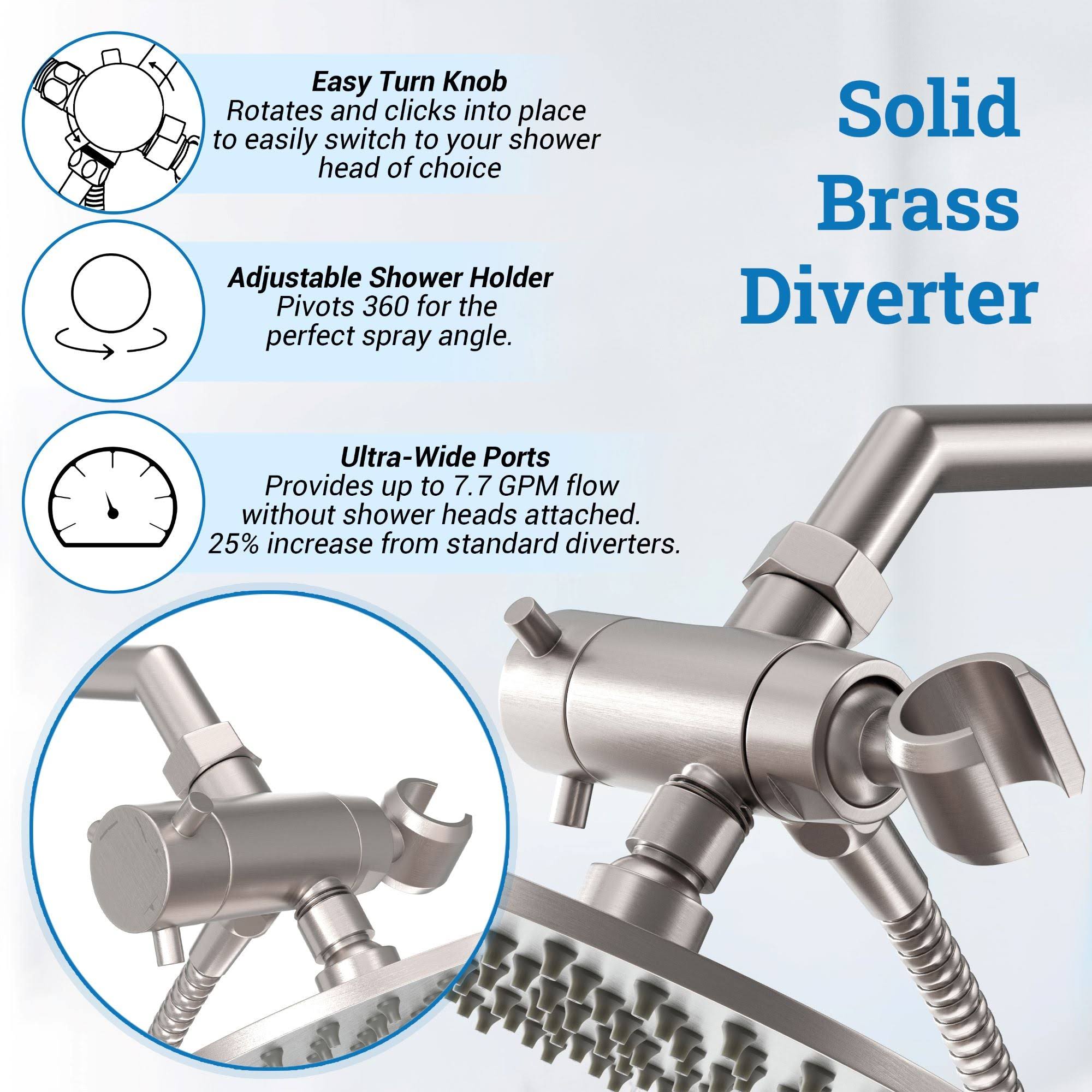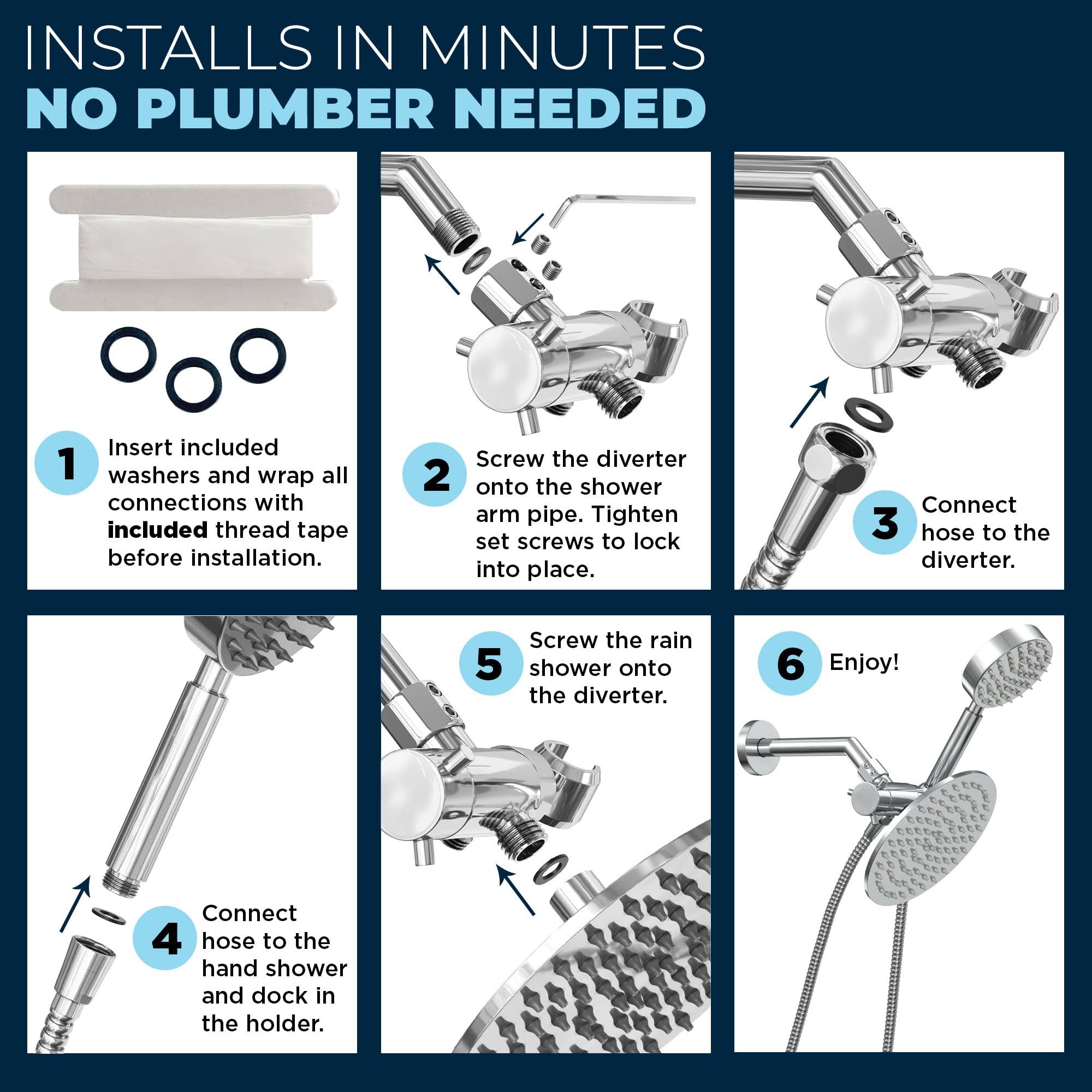 All Metal Dual Shower Head Combo Brushed Nickel- 8 inch Rainfall High Flow Shower Head & Handheld Shower Head High Pressure with Hose 6ft- Luxurious