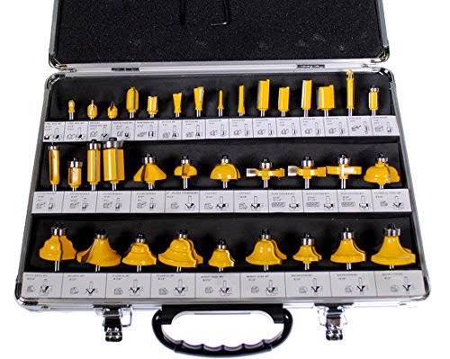 EDMBG Router Bits 35pc Set 1/4" Shank Tungsten Carbide Tips, Aluminum Carry Storage Case Multi Piece Kit
