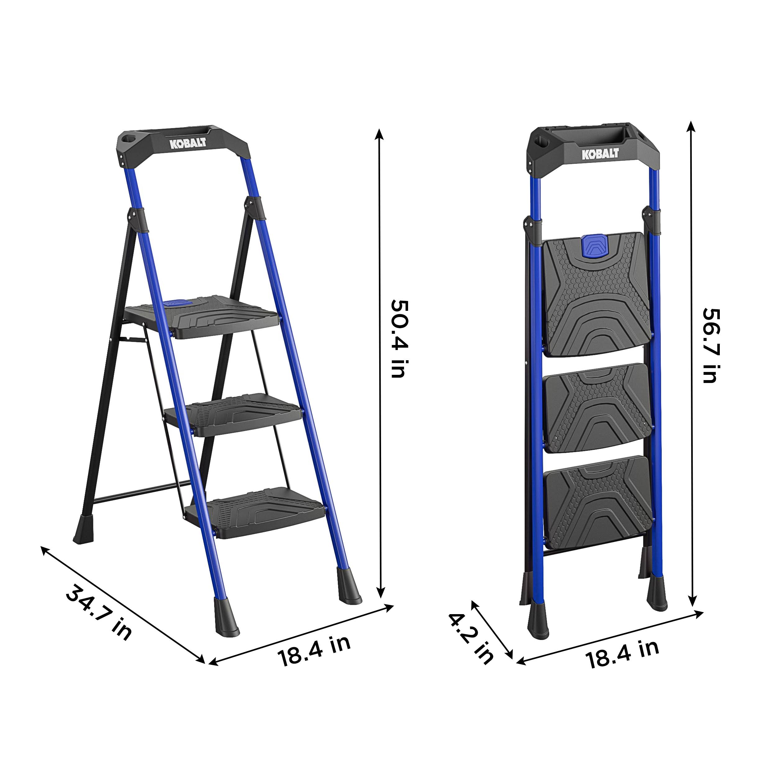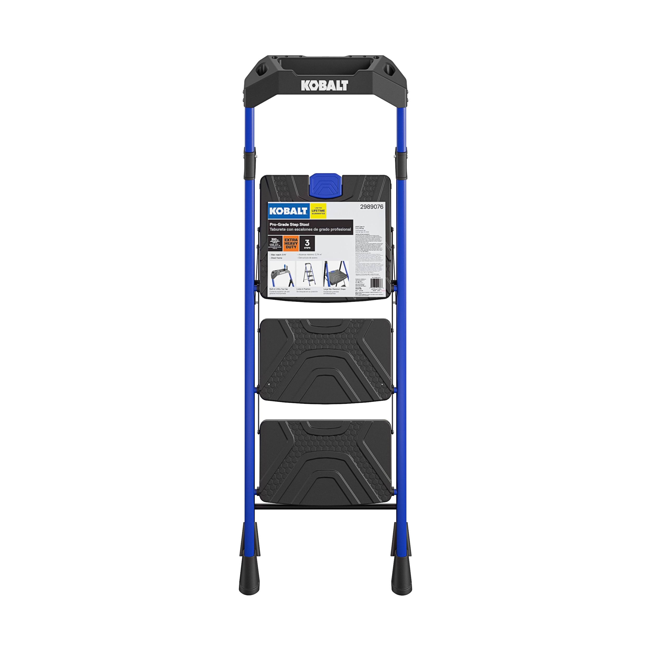 Kobalt 3-Step 300-lb Capacity Black Steel Foldable Step Stool