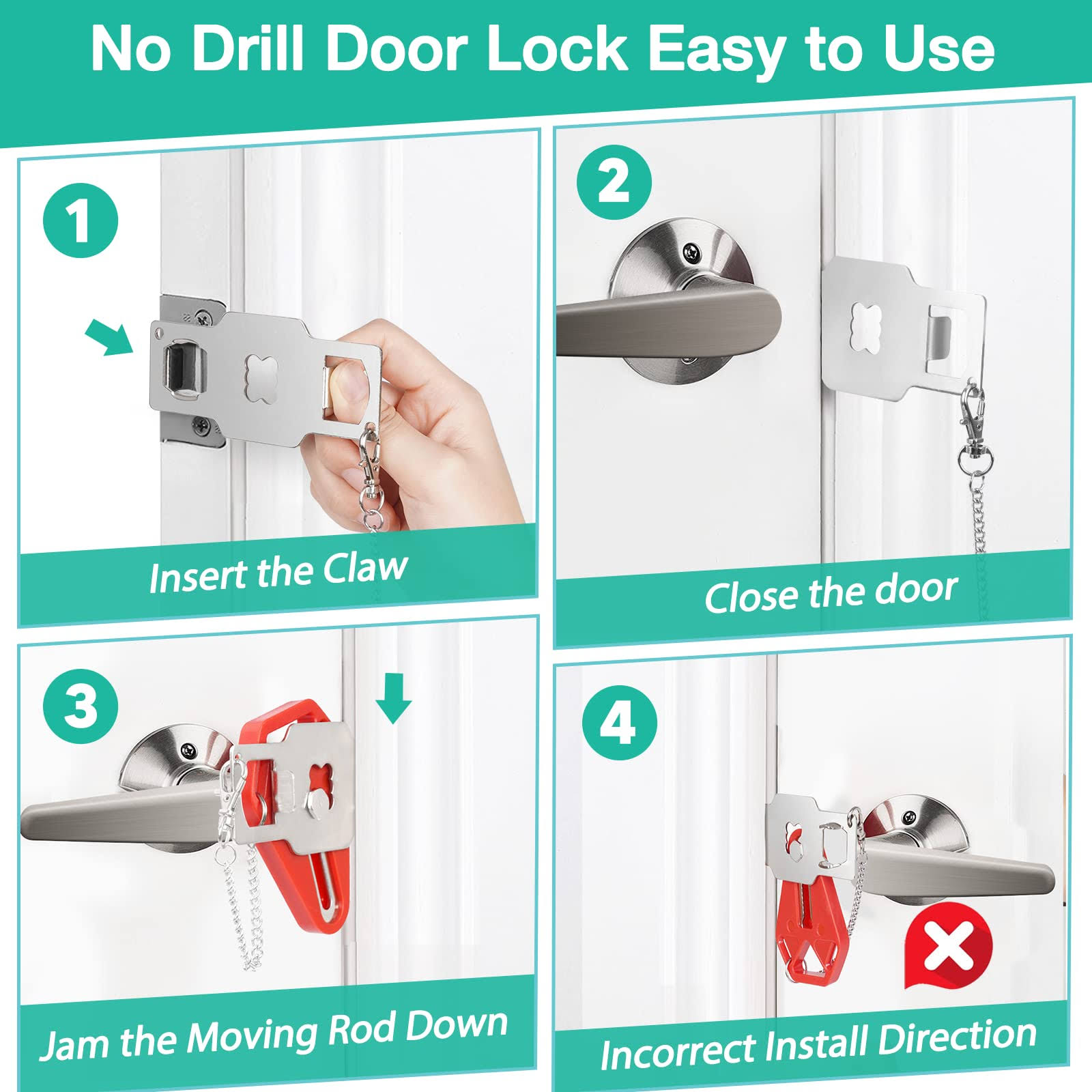 Portable Door Lock Home Security, Upgraded Strong Multi Size Travel Lock for A