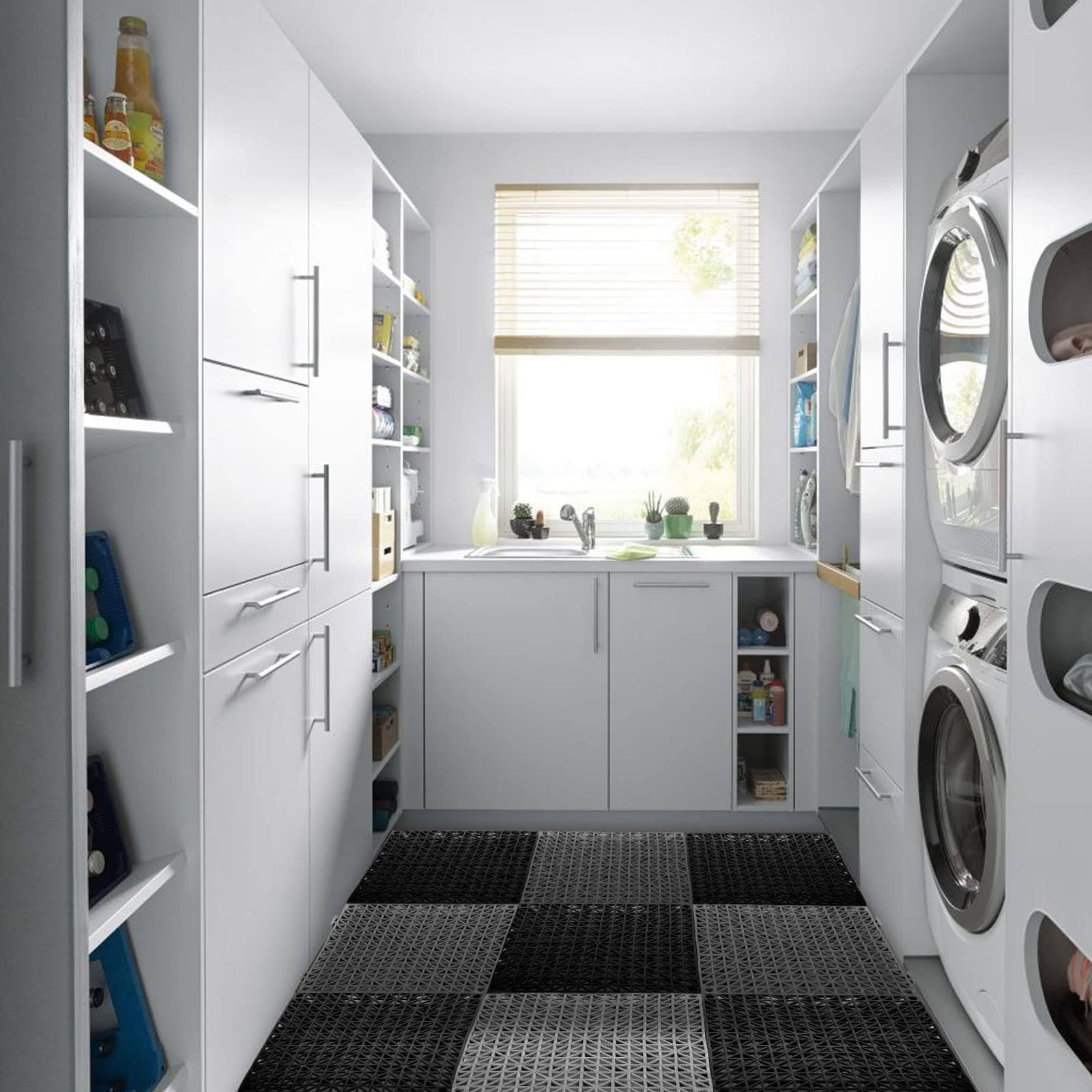 Fengwu 12 Pack 12" x 12" Interlocking Rubber Bathroom Flooring Tiles Non-Slip Splicing Waterproof Mat Modular Interlocking Cushion Mat for Drain, Deck